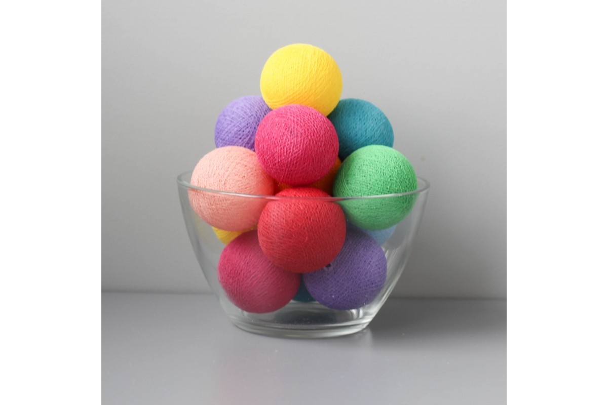 Гирлянда из хлопковых шаров "Радуга" - это отличное украшение для интерьера квартиры и для детского вигвама! Благодаря своей конструкции такие гирлянды абсолютно пожаробезопасны, так как в нагревающийся элемент в них не соприкасается с хлопковыми нитями, из которых сделан сам шар. Такие гирлянды - просто шикарное украшение для любой вечеринки!