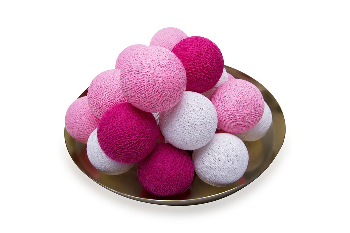 Розовая гирлянда из хлопковых шаров или, как их еще называют, тайские фонарики - это удивительное изобретение, которое невероятно украшает интерьер любой квартиры. Такие фонарики не повредят ребенку, так как нагревательный элемент лампы не касается хлопковых нитей, а следовательно, не сможет нагреть её и поджечь.
