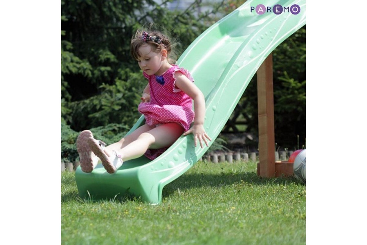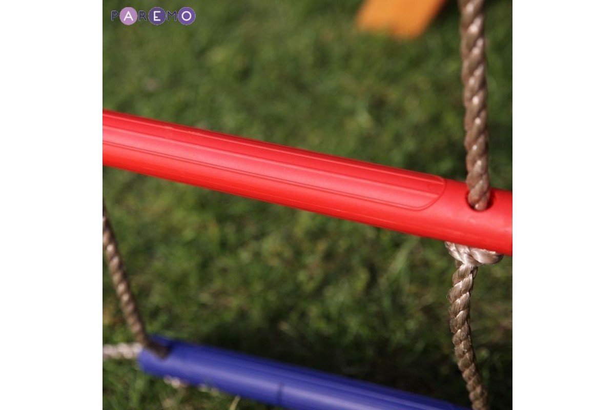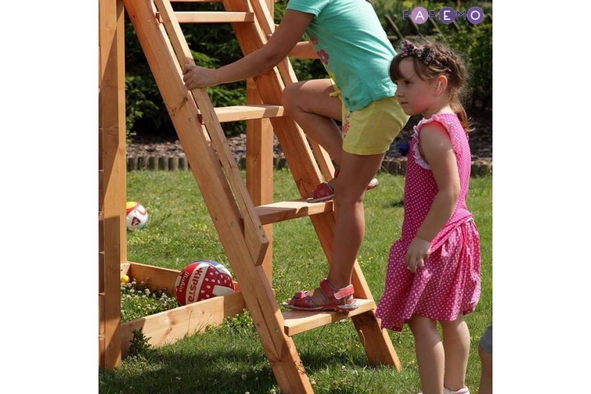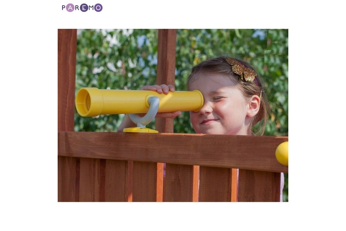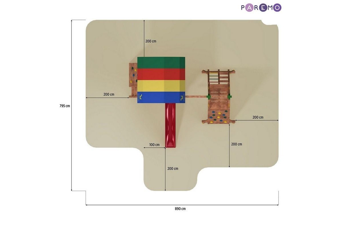 Набор для игровой площадки: детский домик с песочницей, тентом, горкой, качелей и сдвоенными кольцам, PAREMO