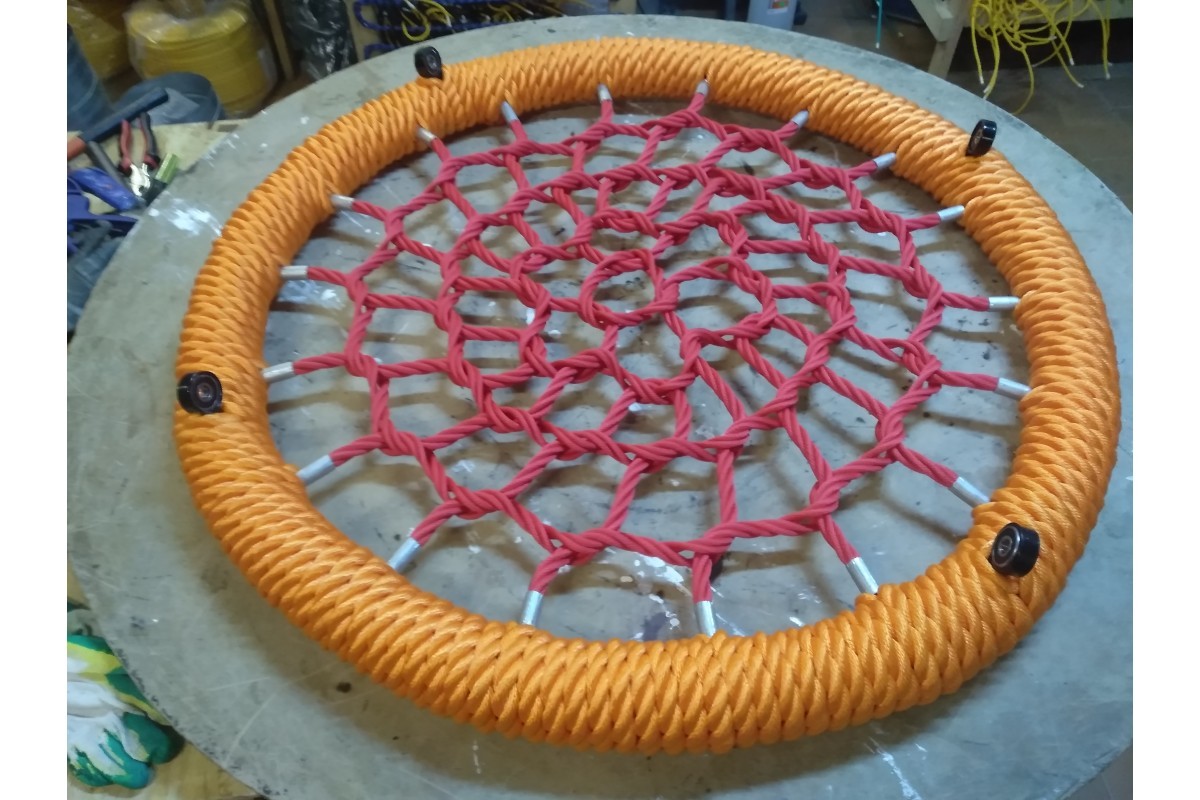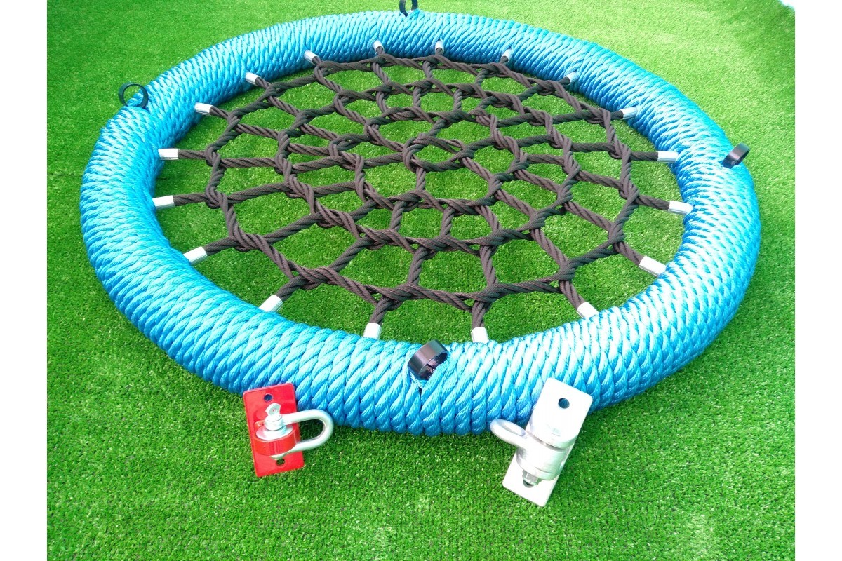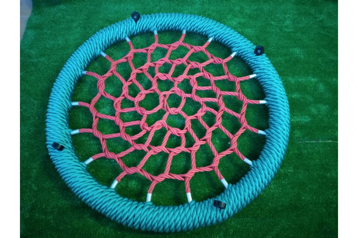 Сиденье (сеть) сплетено из кручёного четырёхпрядного армированного каната толщиной 16 мм, разрывная нагрузка на канат более 3000 кг ; Каждый конец сети опресован специальной муфтой, в которой закрепленно шарнирное соединение для крепления к основанию (ободу). Такое крепление гарантирует отсутствие узлов крепления сети.