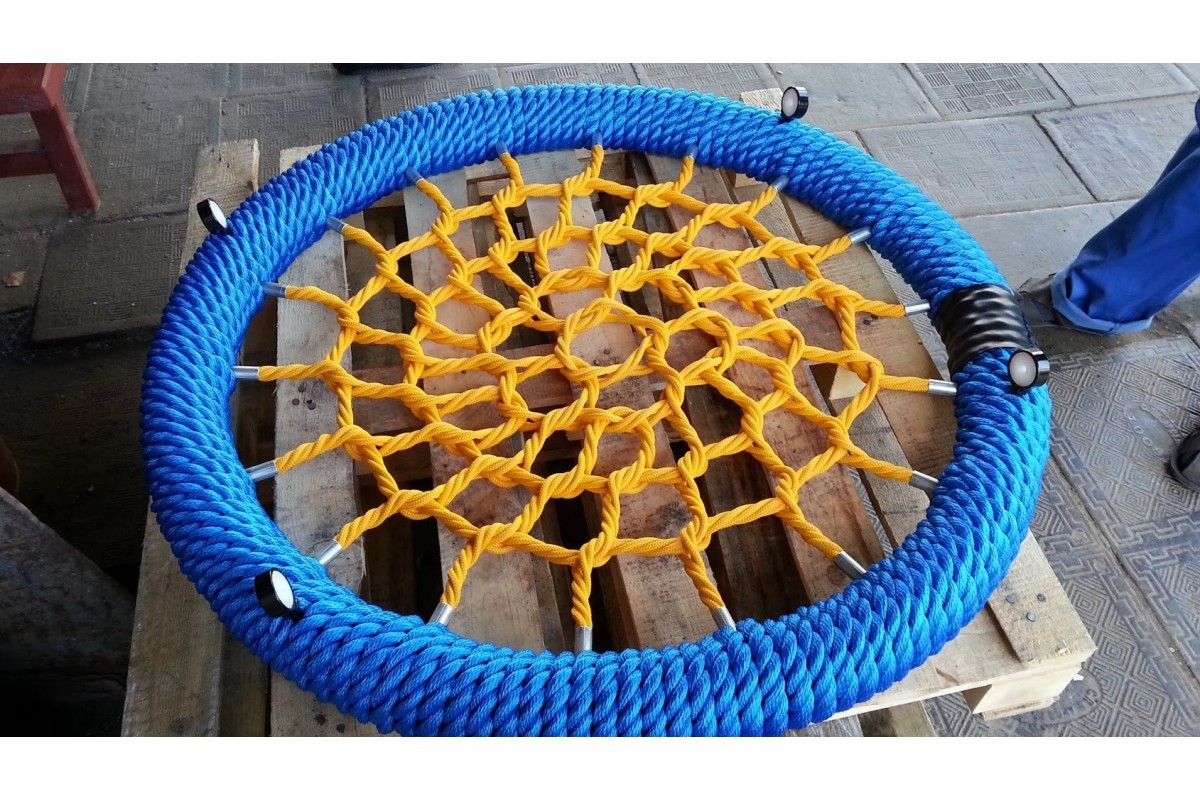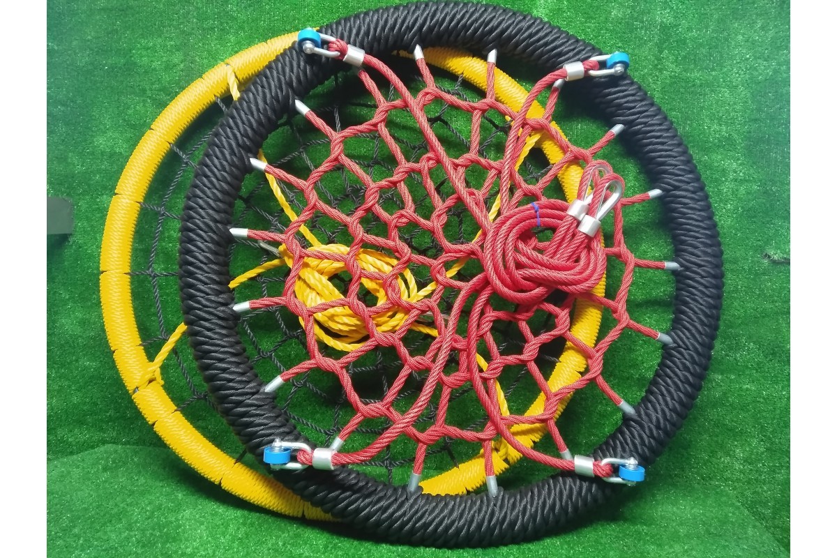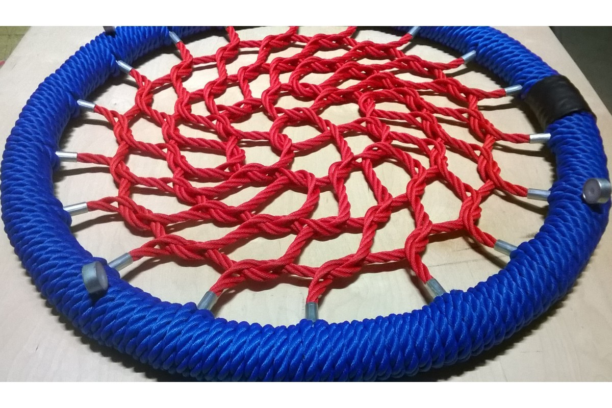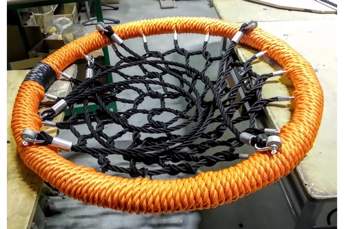 Сиденье (сеть) сплетено из кручёного четырёхпрядного армированного каната толщиной 16 мм, разрывная нагрузка на канат более 3000 кг ; Каждый конец сети опресован специальной муфтой, в которой закрепленно шарнирное соединение для крепления к основанию (ободу). Такое крепление гарантирует отсутствие узлов крепления сети.
