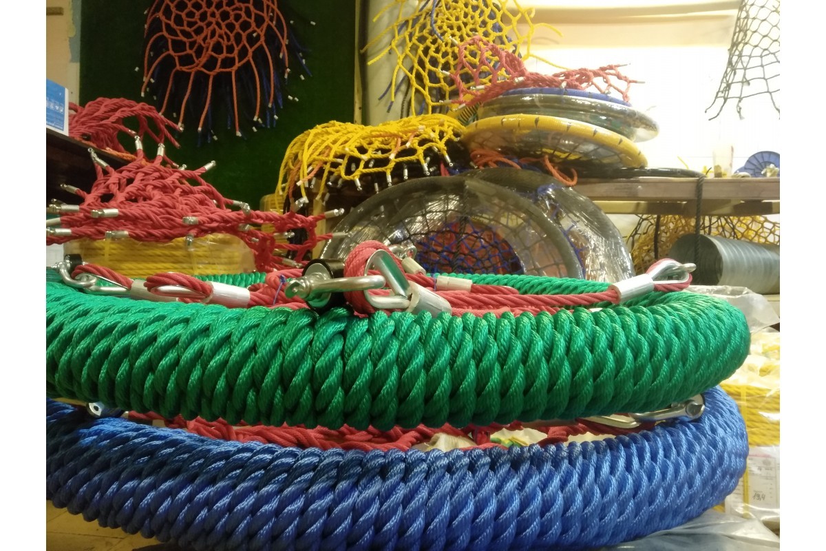 Оплетка основания и подвесы качелей изготовлены из трёхпрядного каната толщиной 20мм. Длина каждого из подвесов 1250 мм.