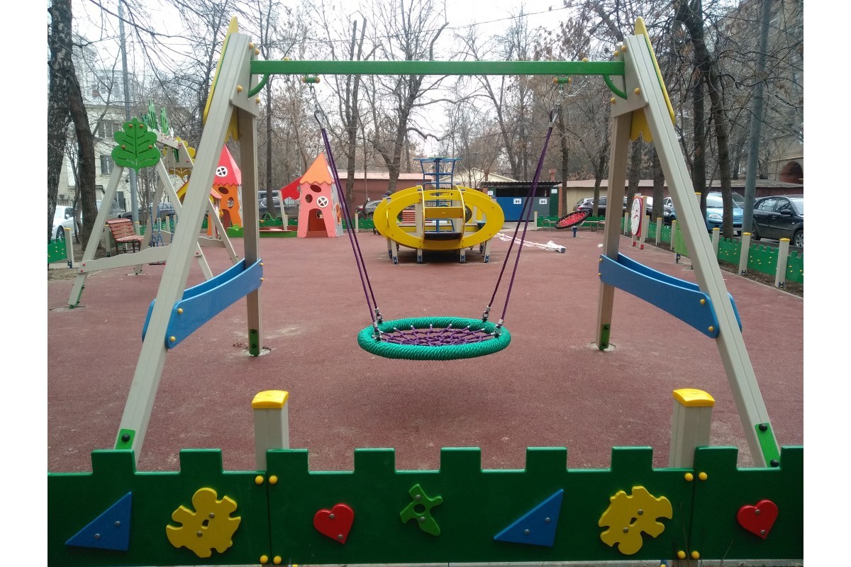 Основание качелей выполнено из стальной трубы толщиной стенки 1,5 мм, окрашено полимерным покрытием для предотвращения коррозии.