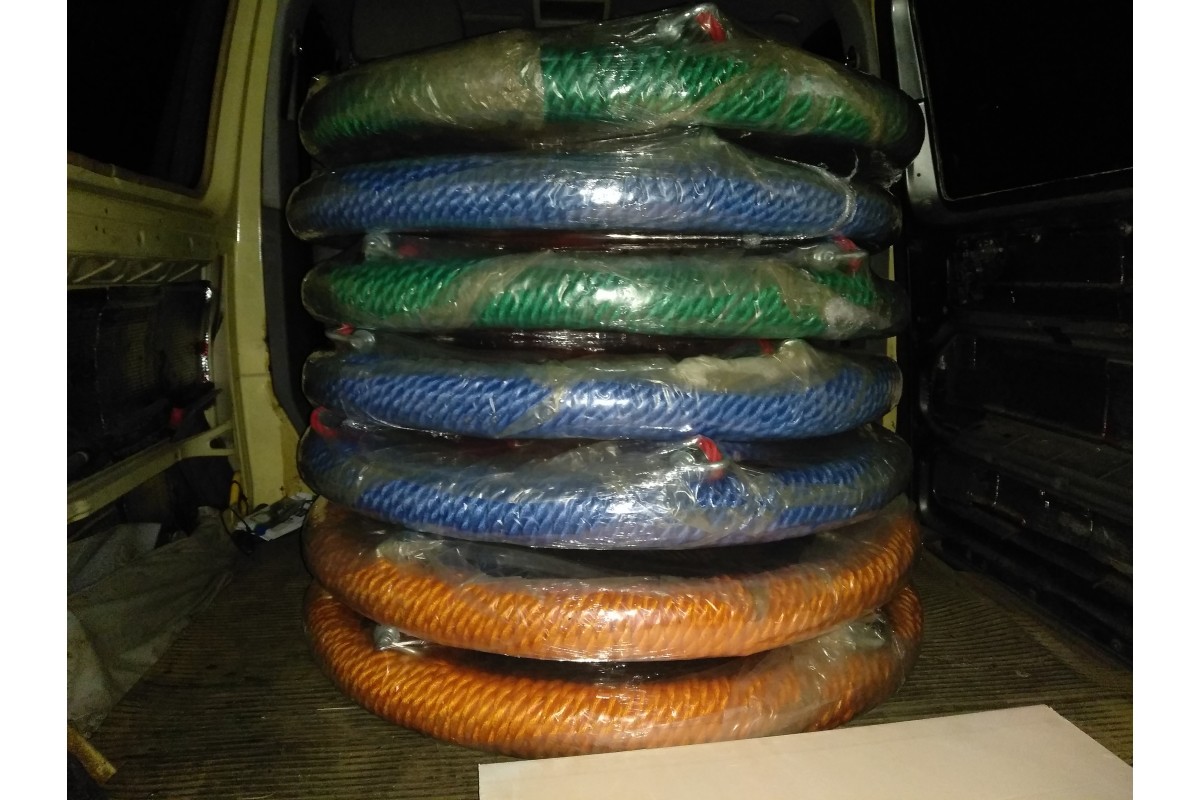 Материал веревки; сеть- стальной трос в мягкой оплётке, обод- полипропиленовый канат