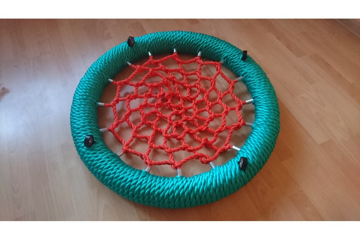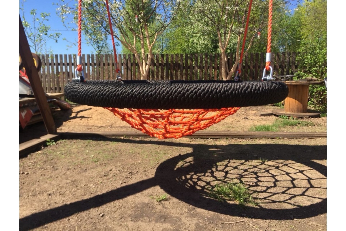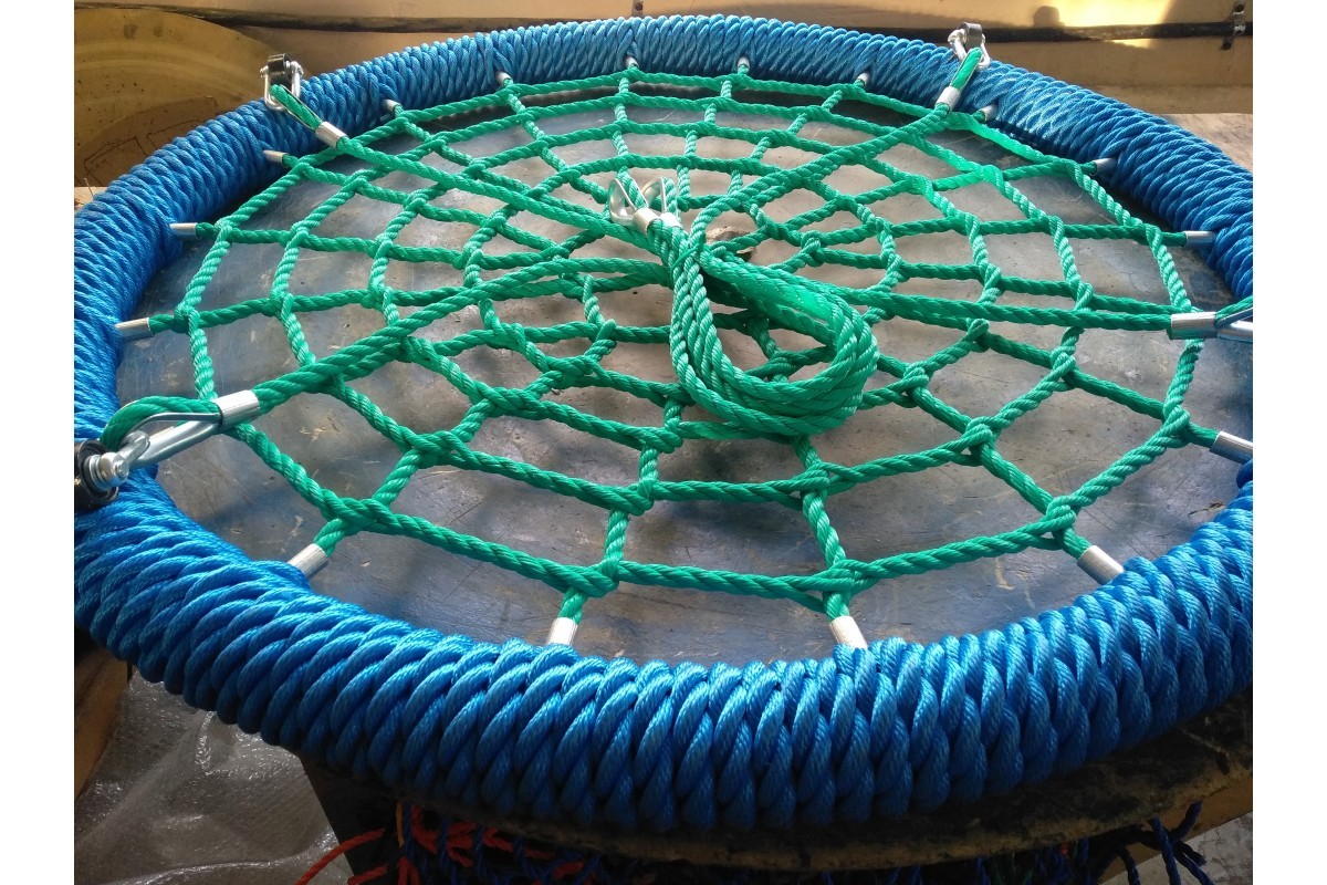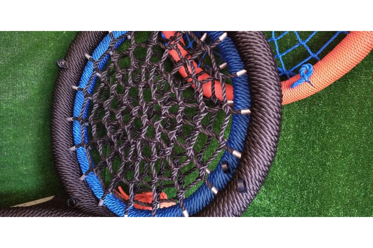 Оплетка основания и подвесы качелей изготовлены из трёхпрядного каната толщиной 14мм. Длина каждого из подвесов 1250 мм.