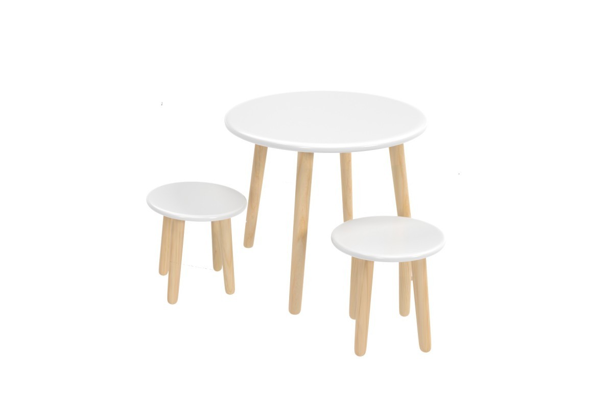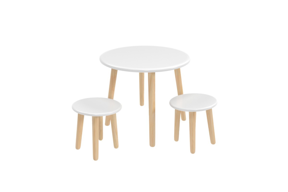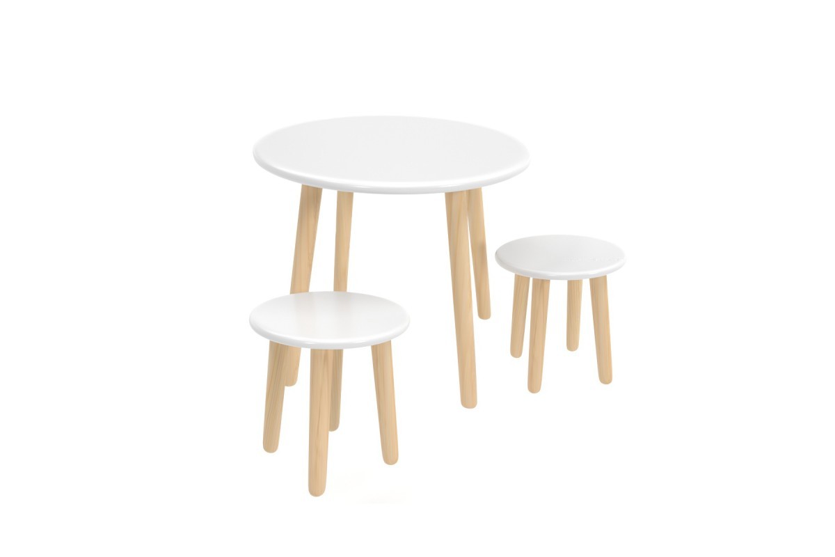 Детский комплект "Круглый" стол и 2 круглых табурета белый, Bambini Letto