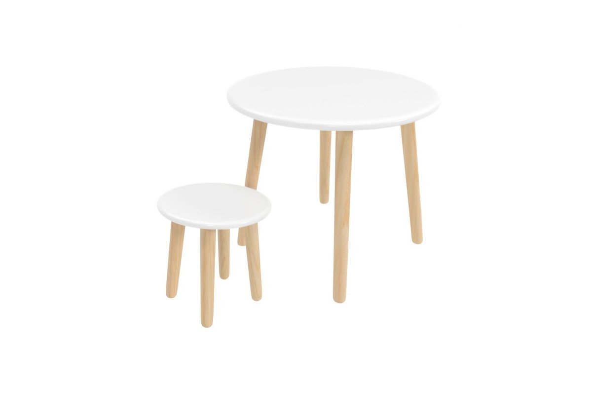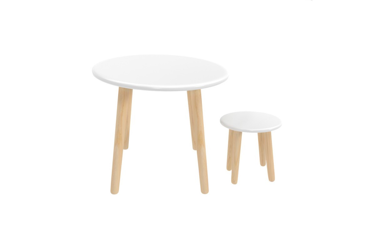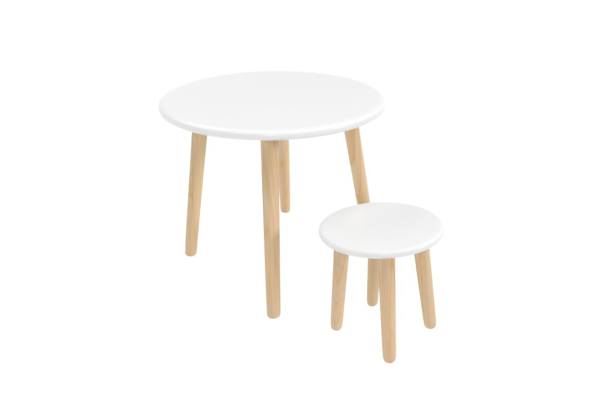 Детский комплект стол и табурет Круглый белый, Bambini Letto