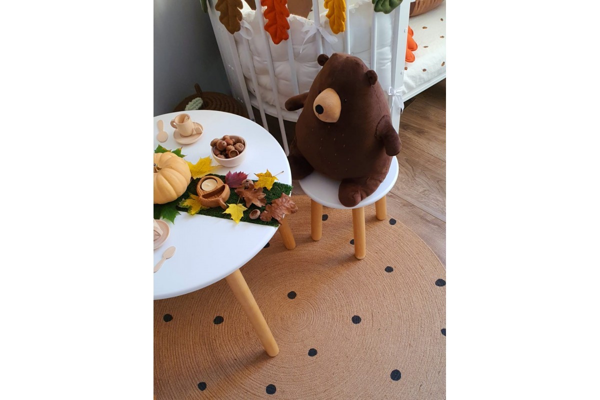 Детский круглый столик и стульчик рассчитаны на возраст от 2 лет до 5 лет. Но если ребенок вырос и не хочет расставаться со своим любимым столом и стулом, не беда. У нас можно заказать деревянные ножки для стола и стула для детей до 9 лет, всего за пару минут выкрутить маленькие ножки и вкрутить ножки большего размера.