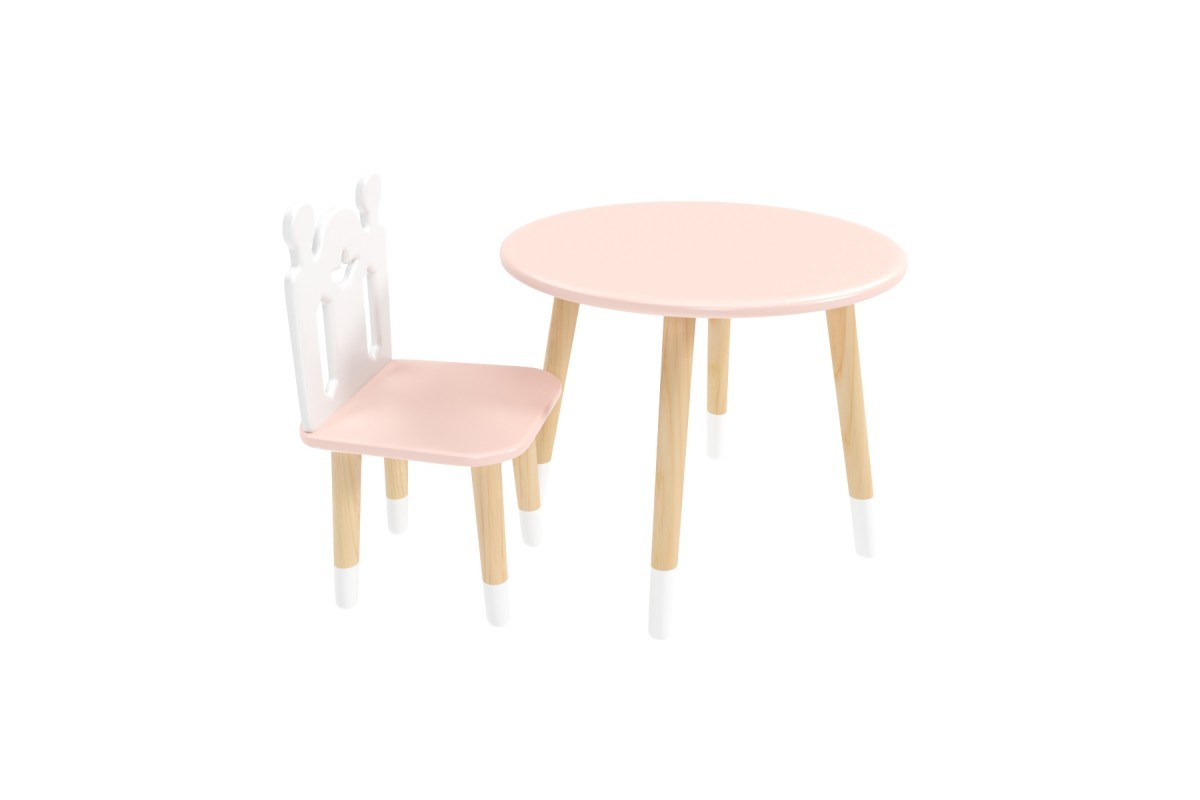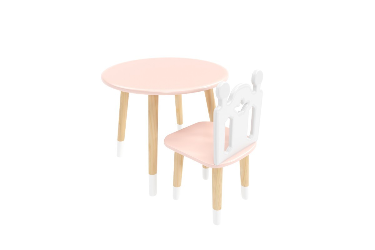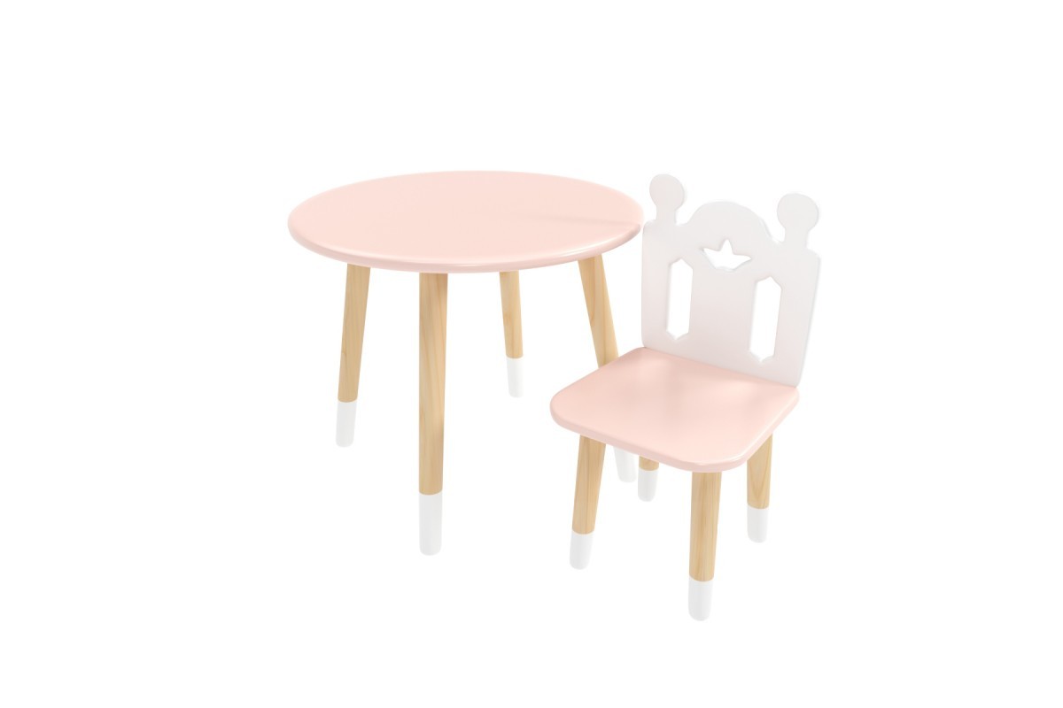 Детский комплект круглый стол и стул принц Артур розового цвета с носочками