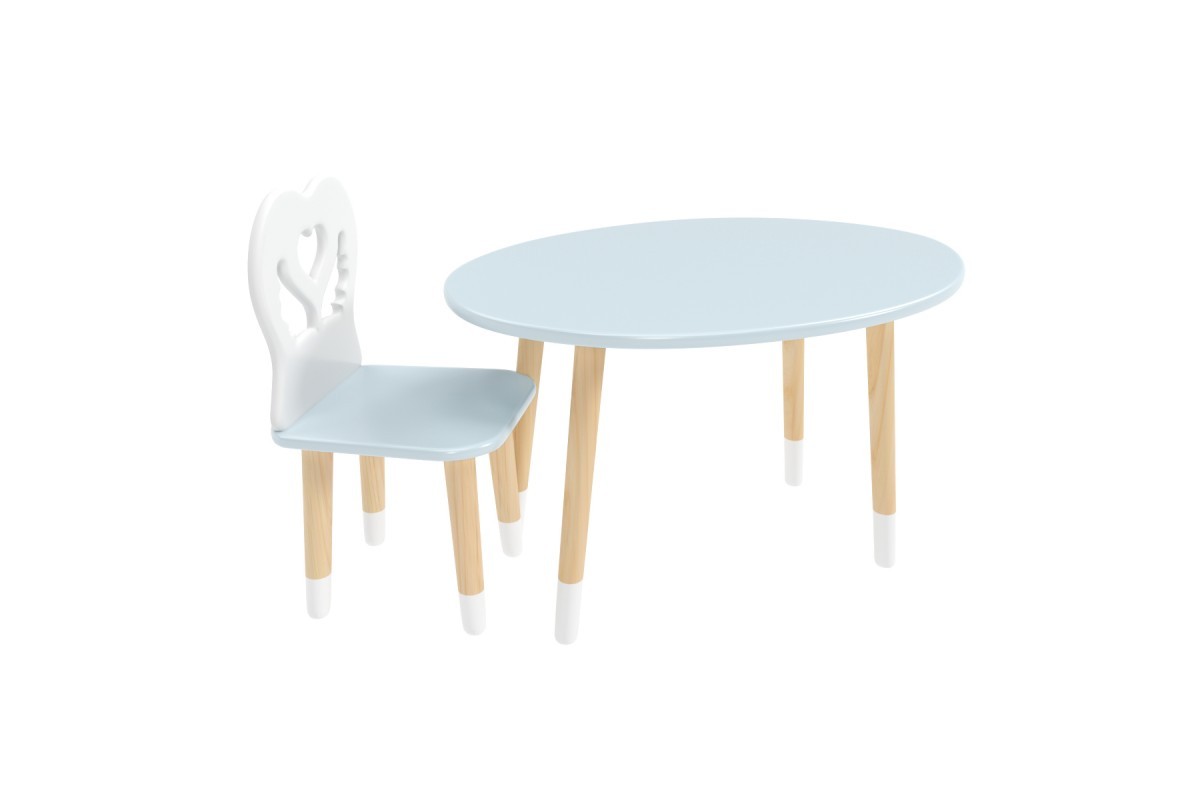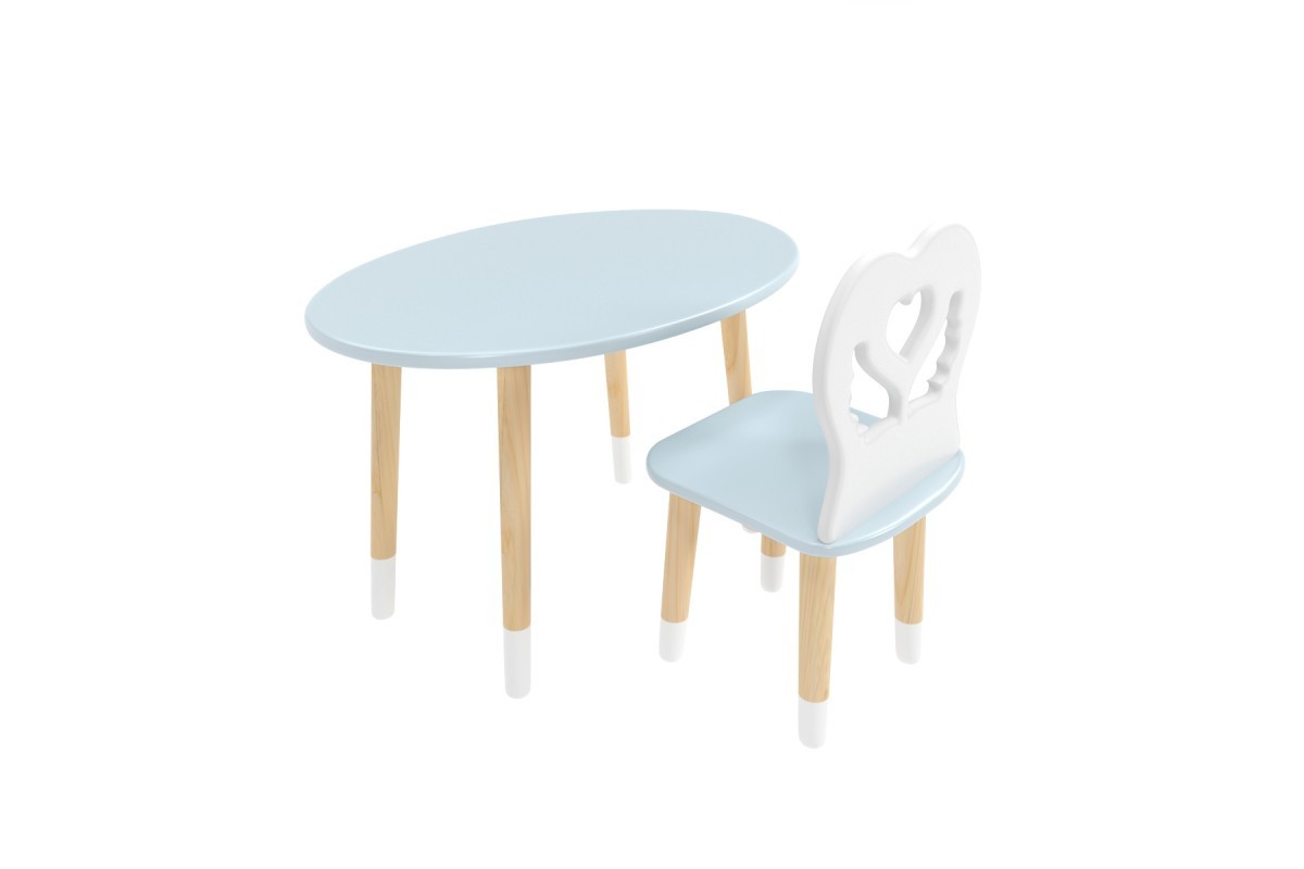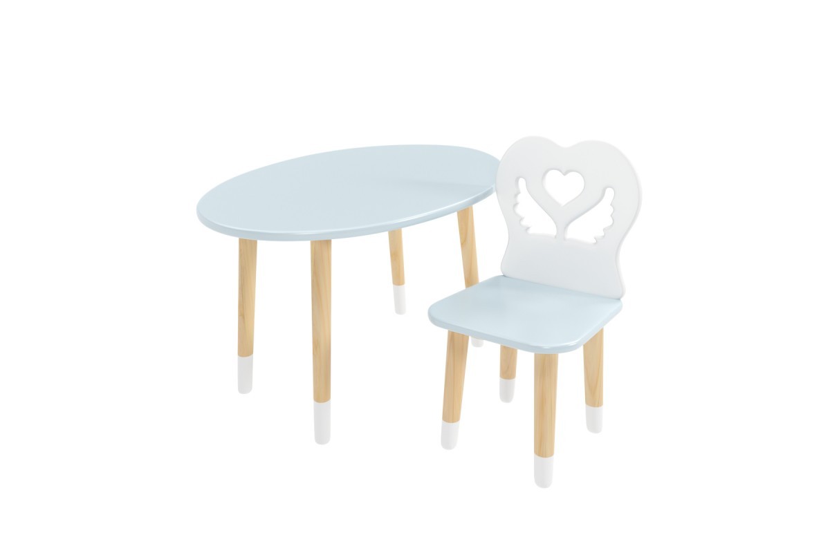 Детский комплект овальный стол и стул крылья с сердцем голубого цвета с носочками