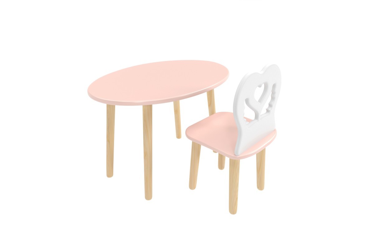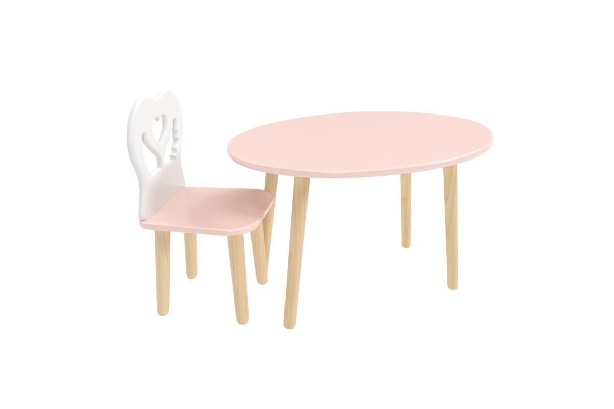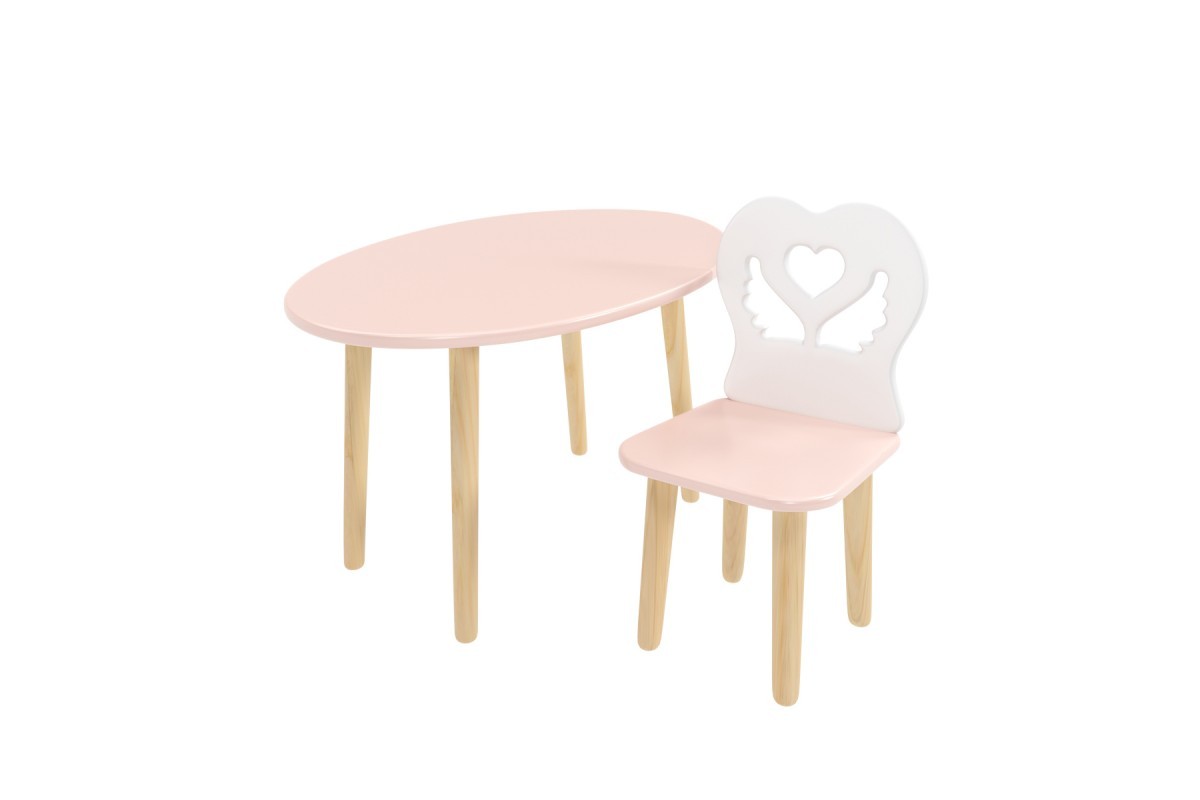 Детский комплект овальный стол и стул крылья с сердцем розового цвета