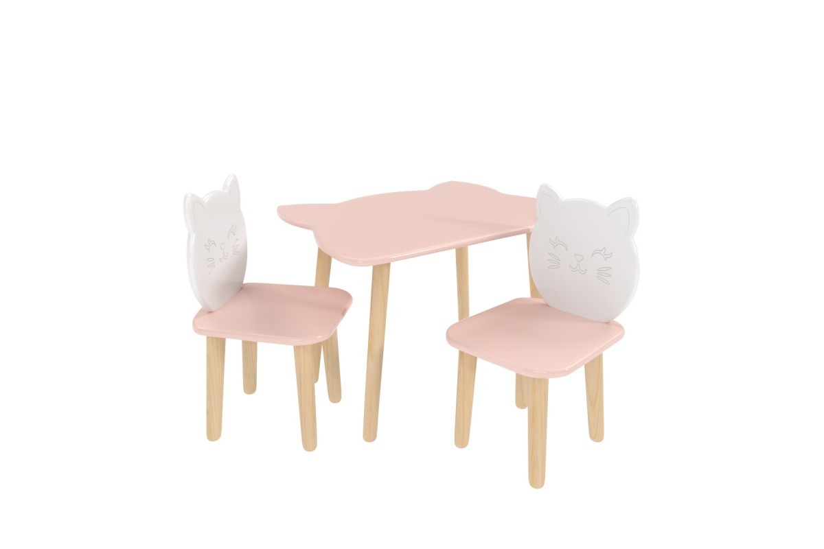 Детский комплект стол и 2 стула Котик розовый, Bambini Letto