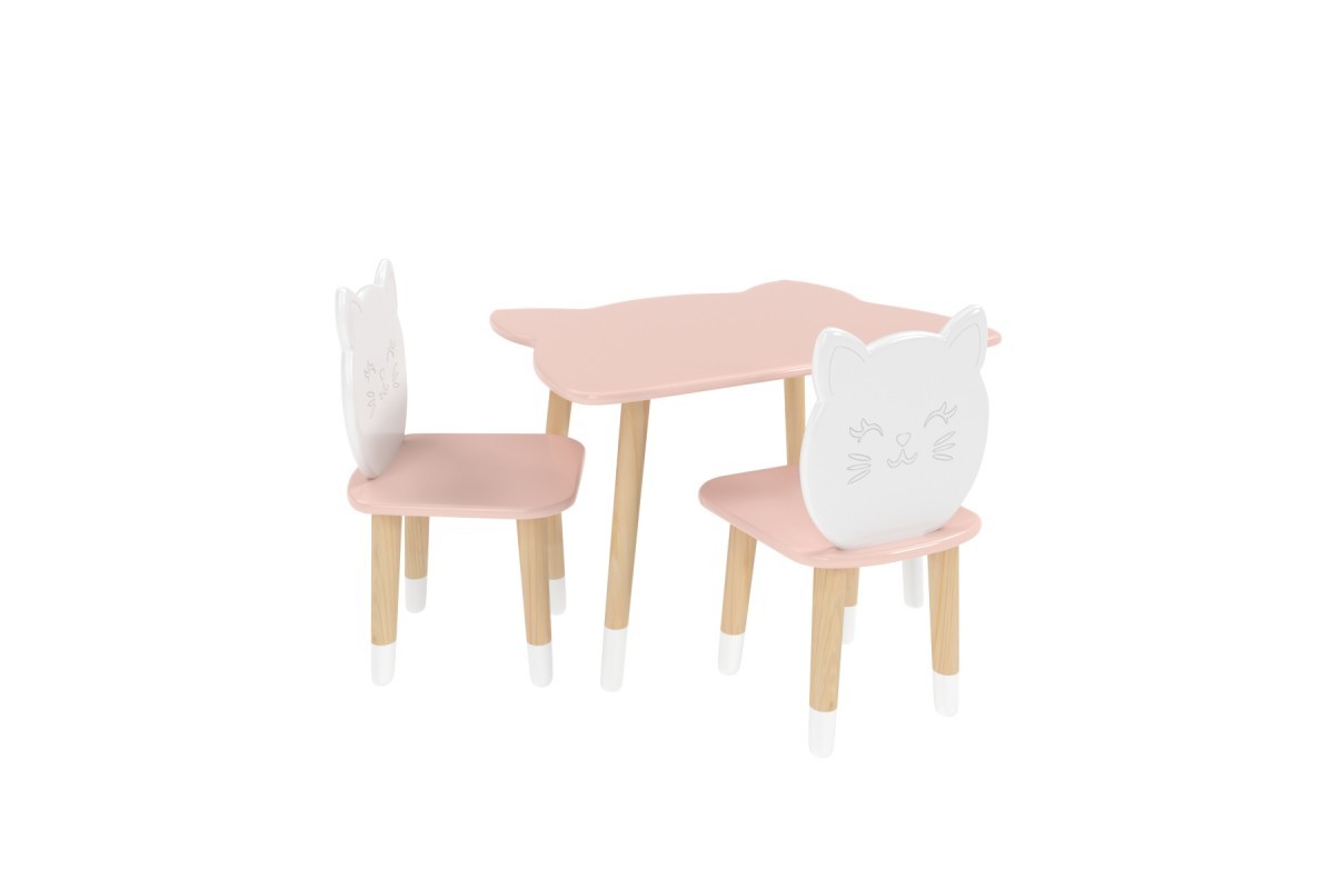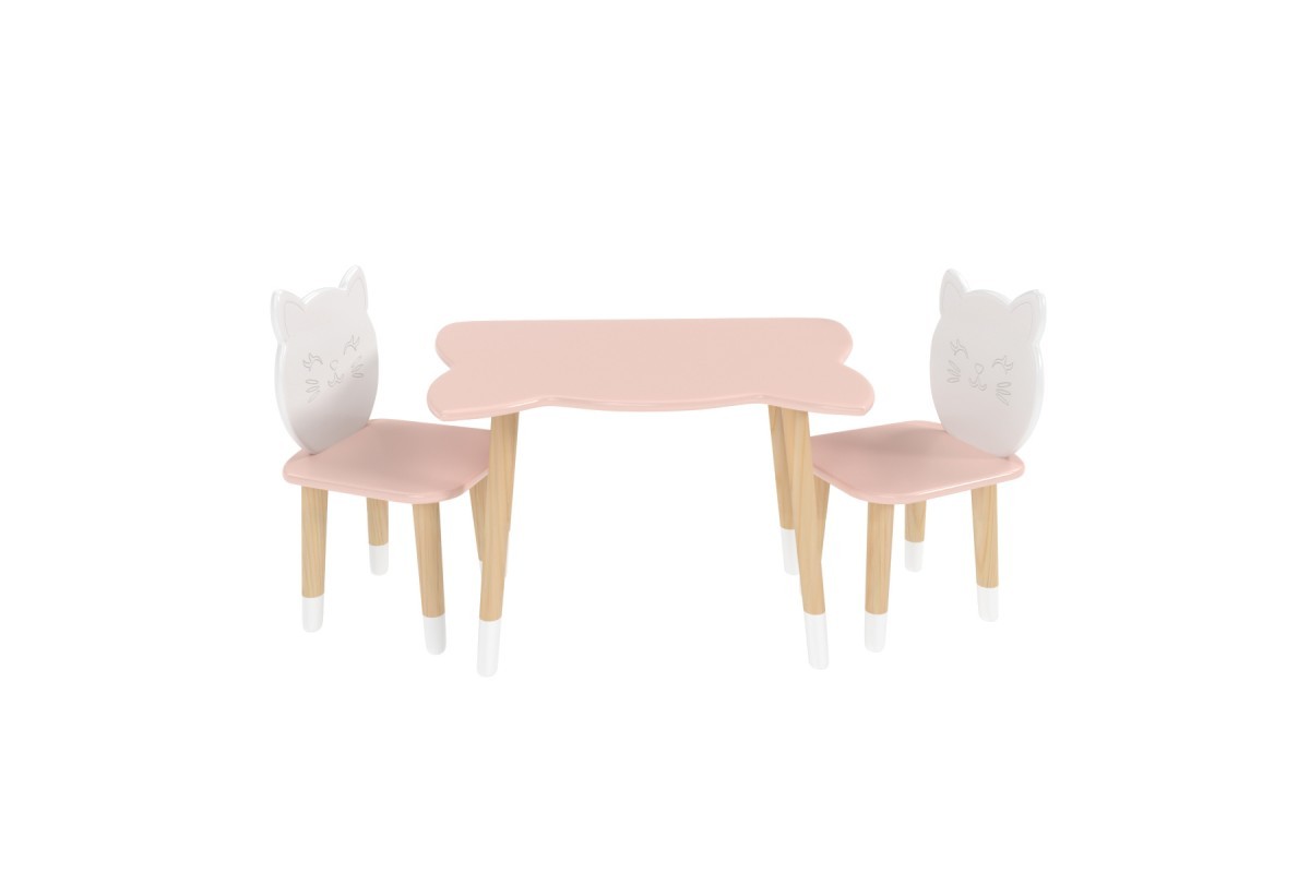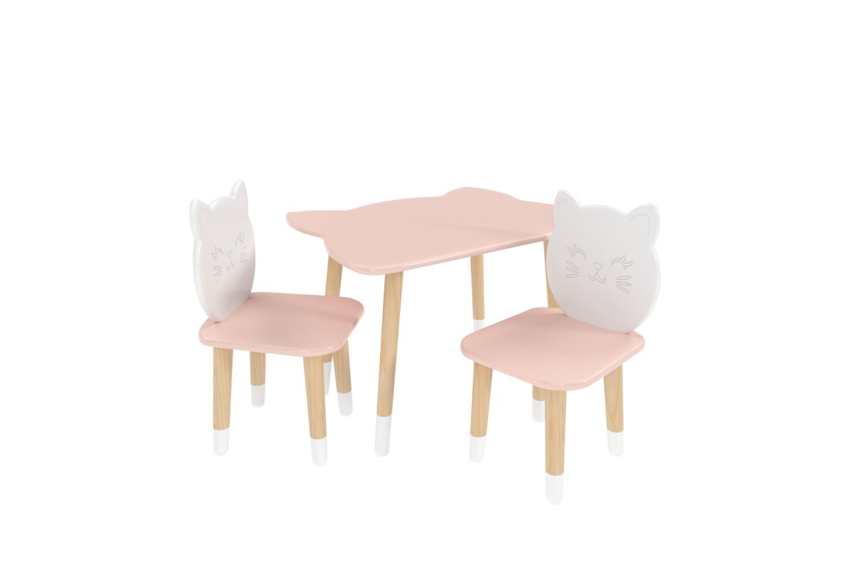 Детский комплект стол и 2 стула котик розового цвета с носочками
