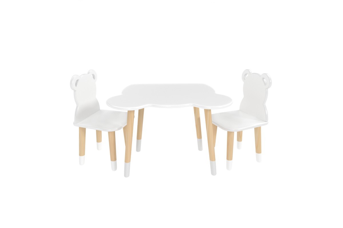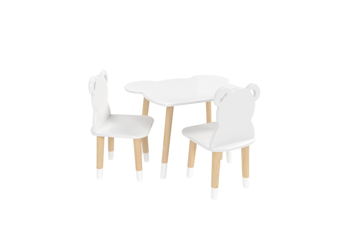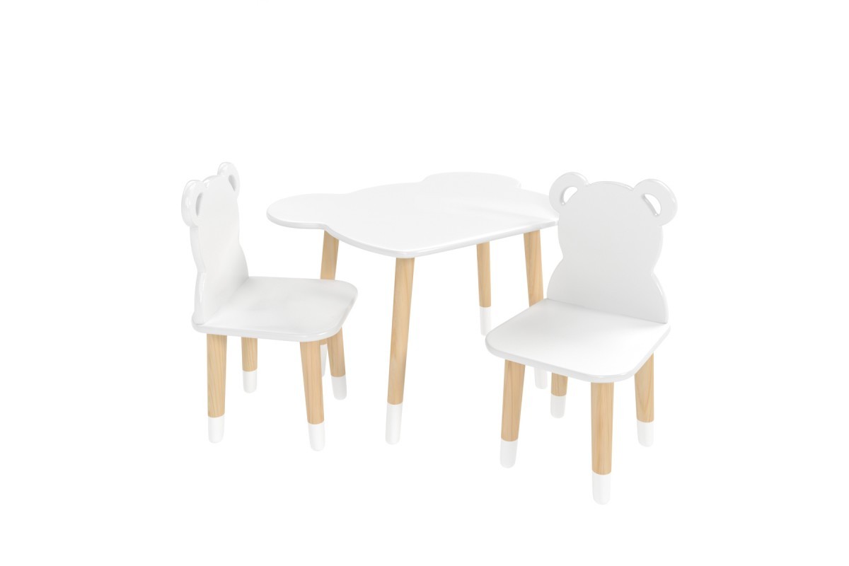 Детский комплект стол и 2 стула мишка белого цвета с носочками