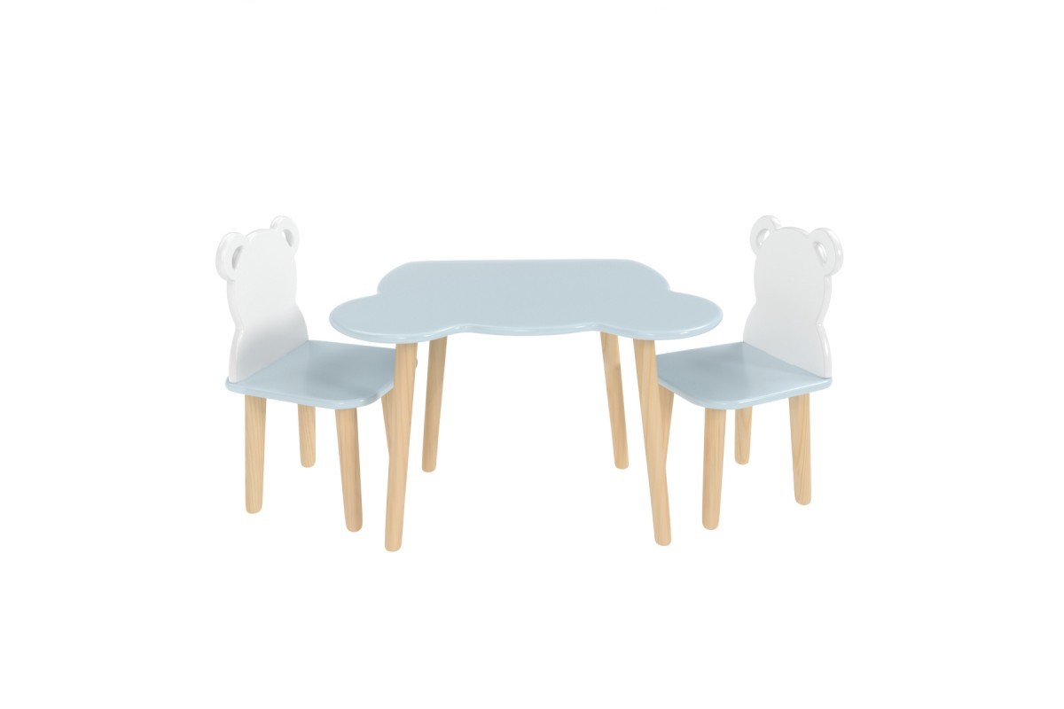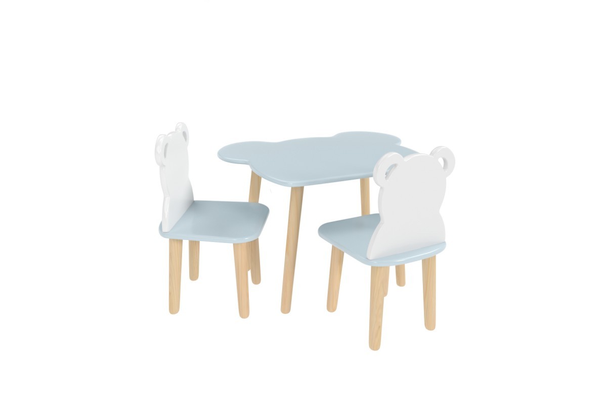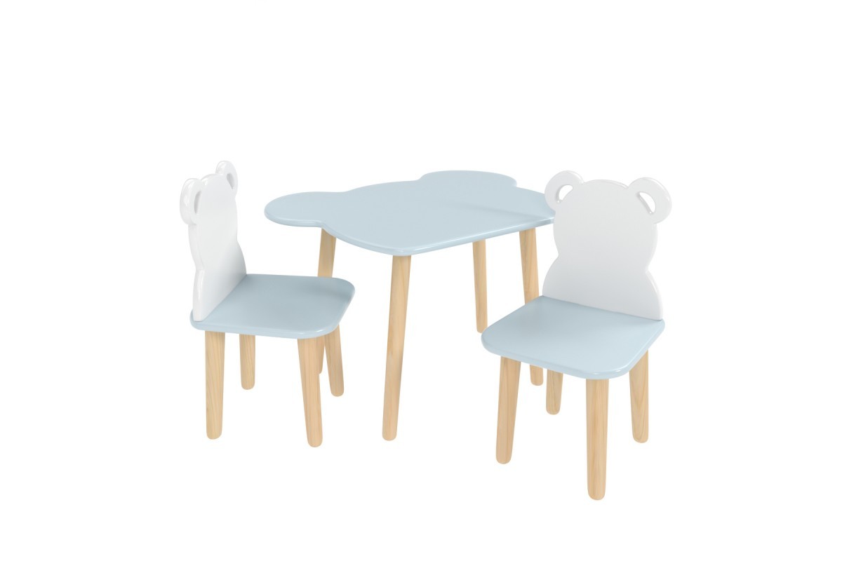 Детский комплект стол и 2 стула мишка голубого цвета