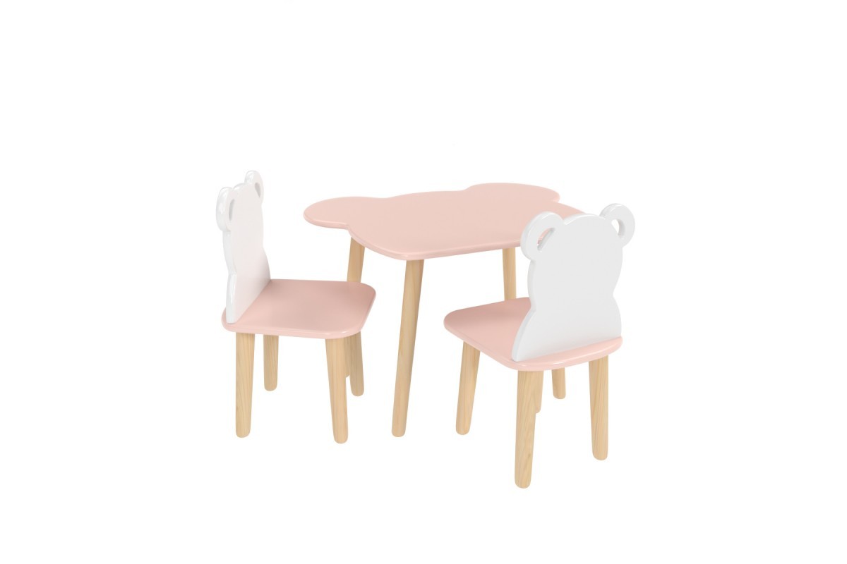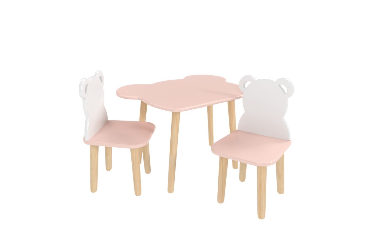 Детский комплект стол и 2 стула Мишка розовый, Bambini Letto