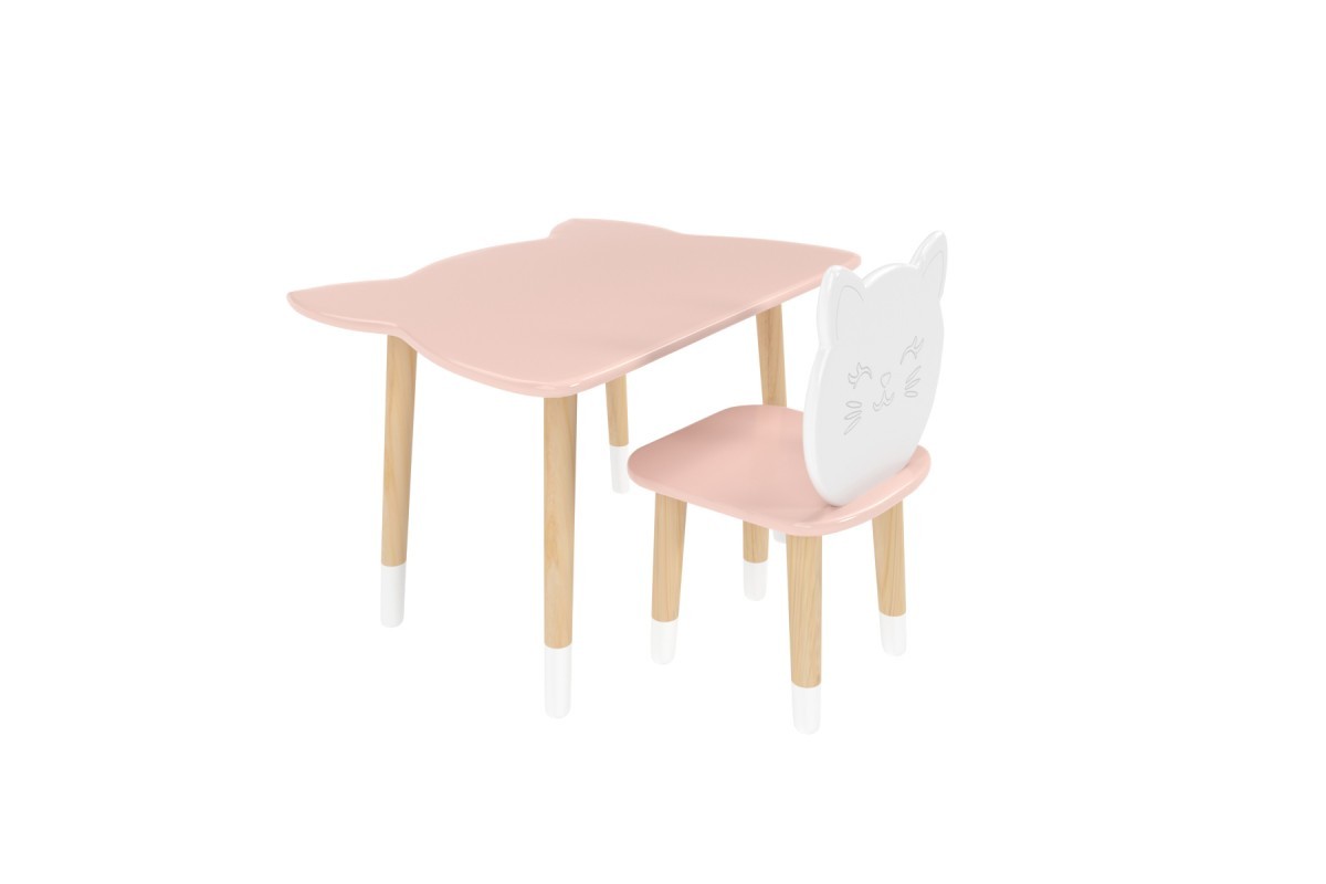Детский комплект стол и стул Котик розовый, c носочками, Bambini Letto