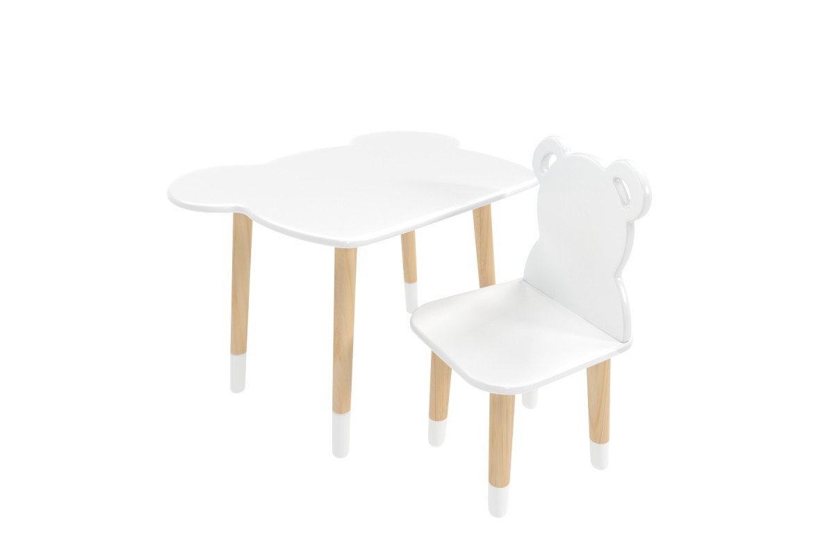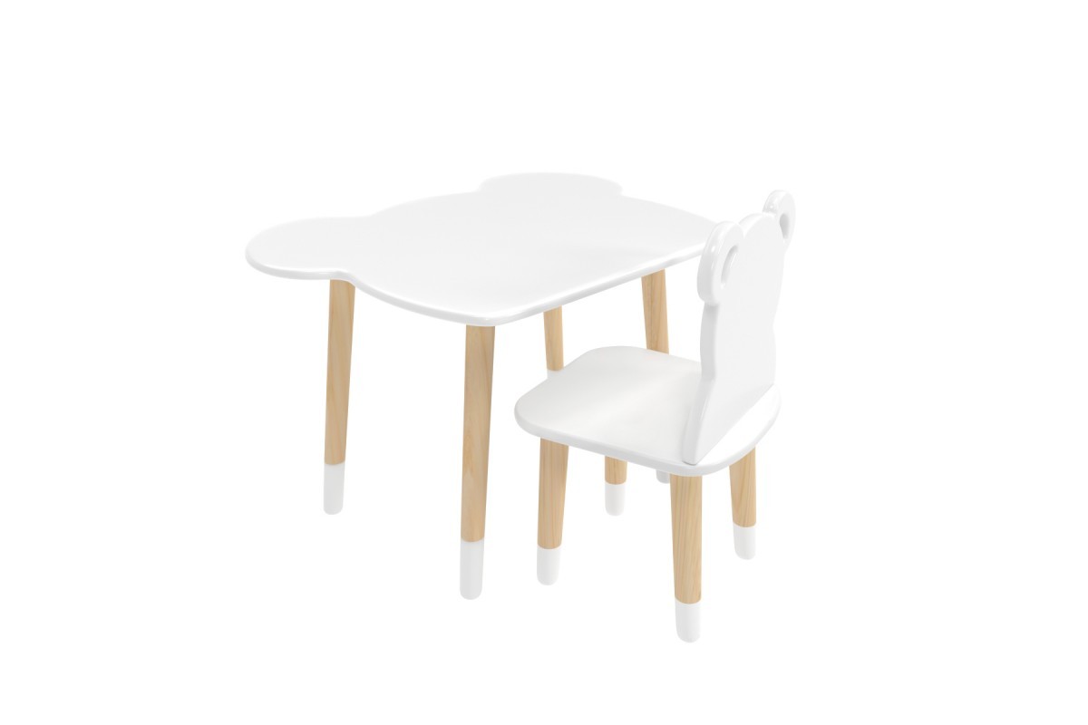 Детский комплект стол и стул Мишка белый, с носочками, Bambini Letto