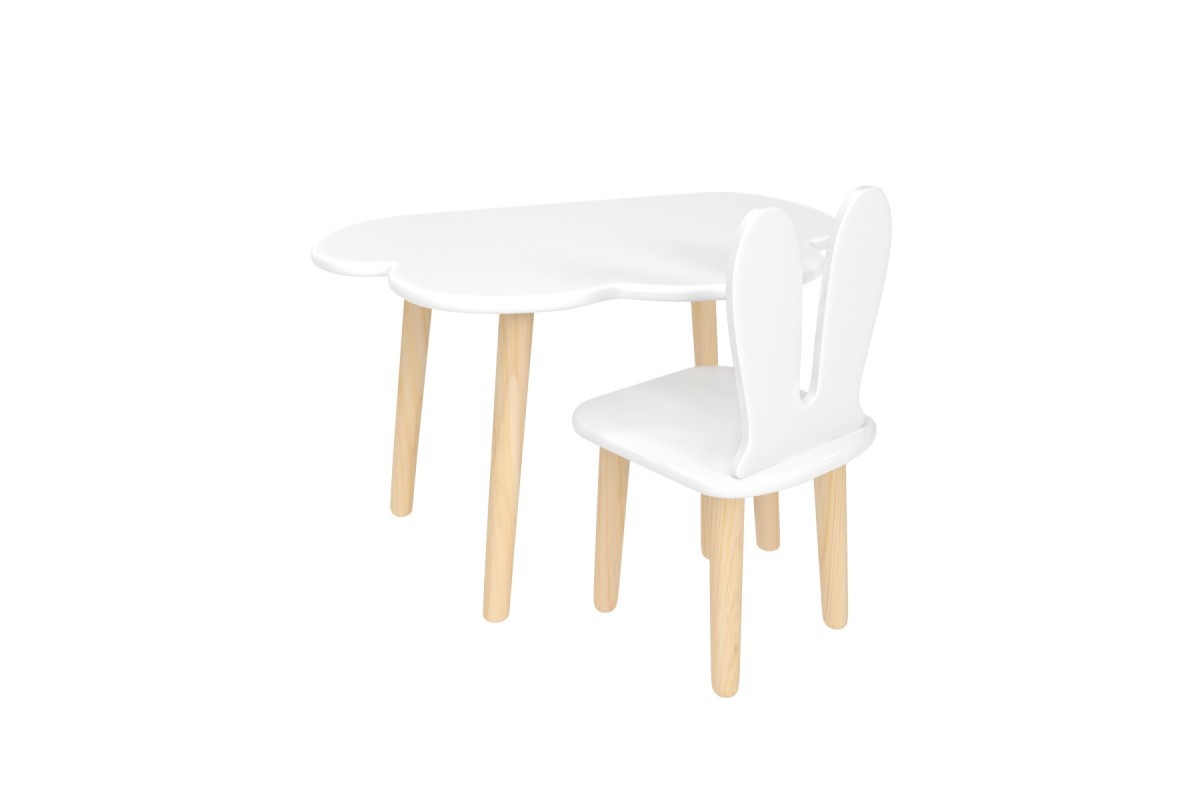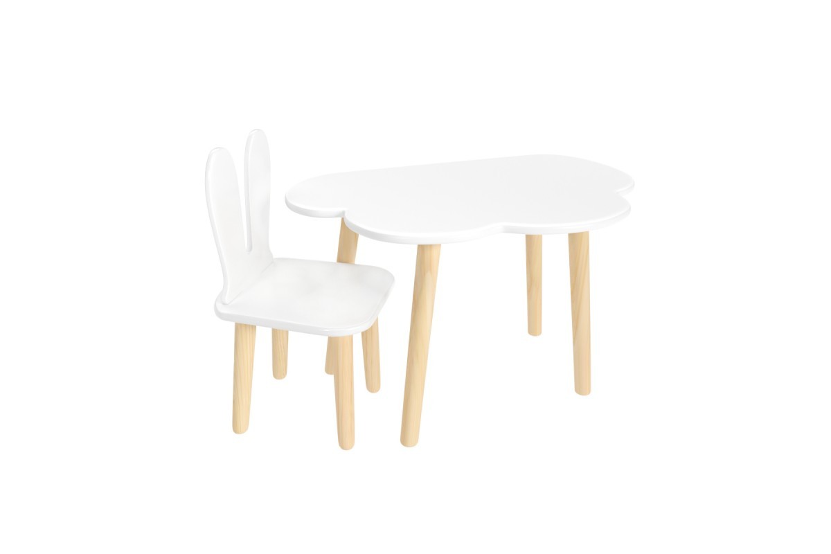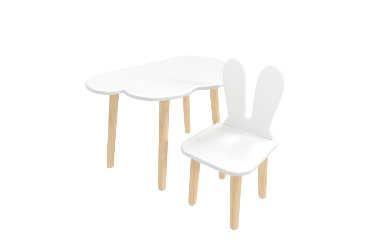 Детский комплект стол и стул облако и уши зайца белого цвета