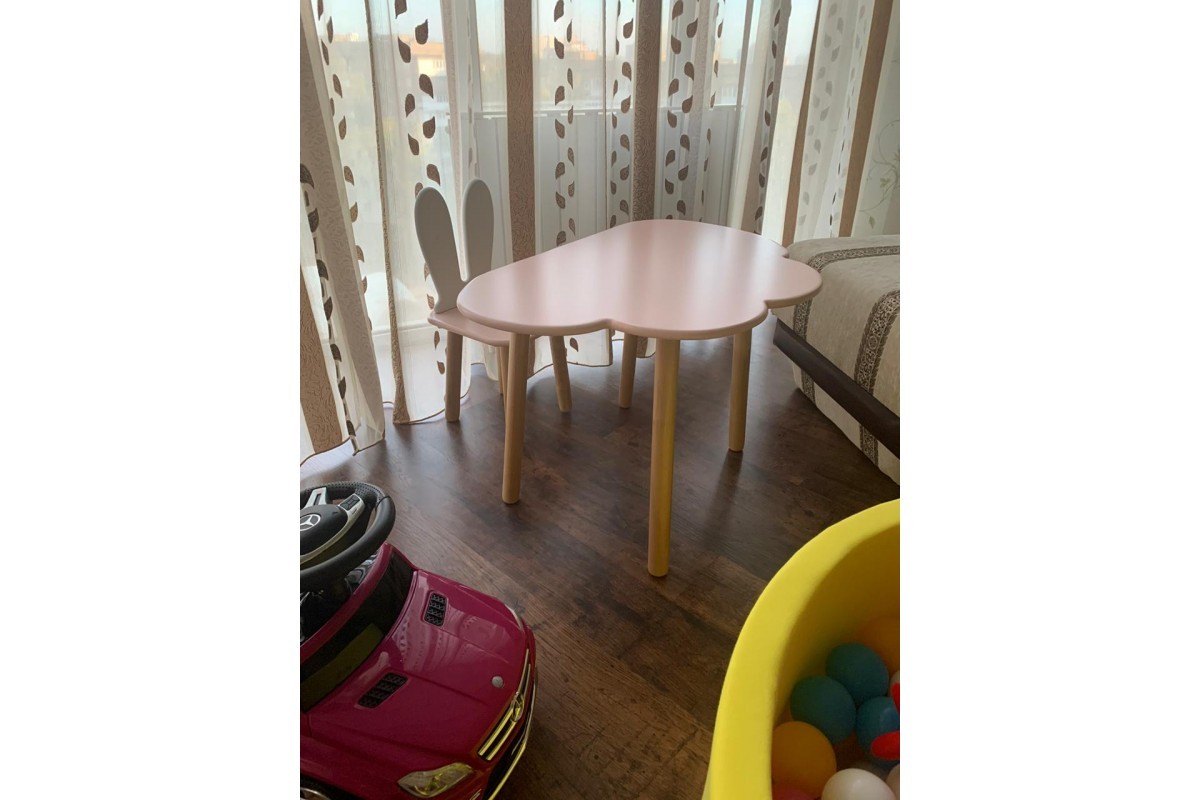 Детский комплект стол и стул облако и уши зайца розового цвета