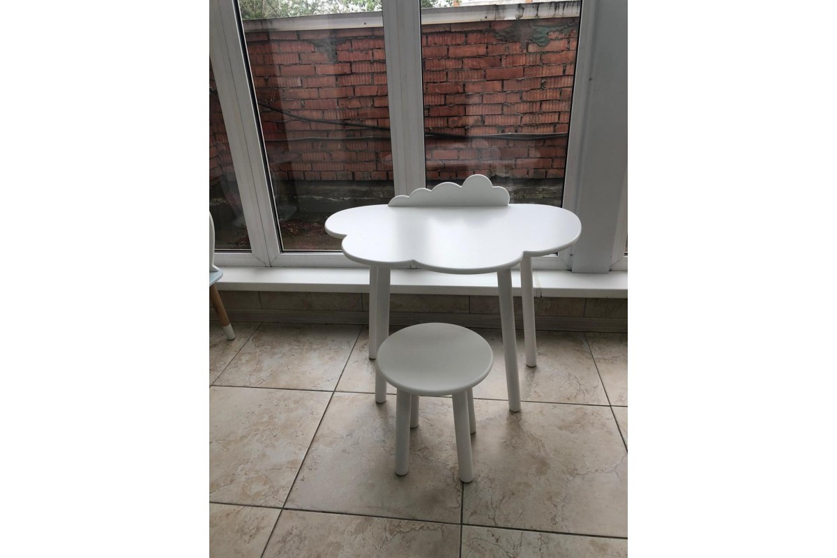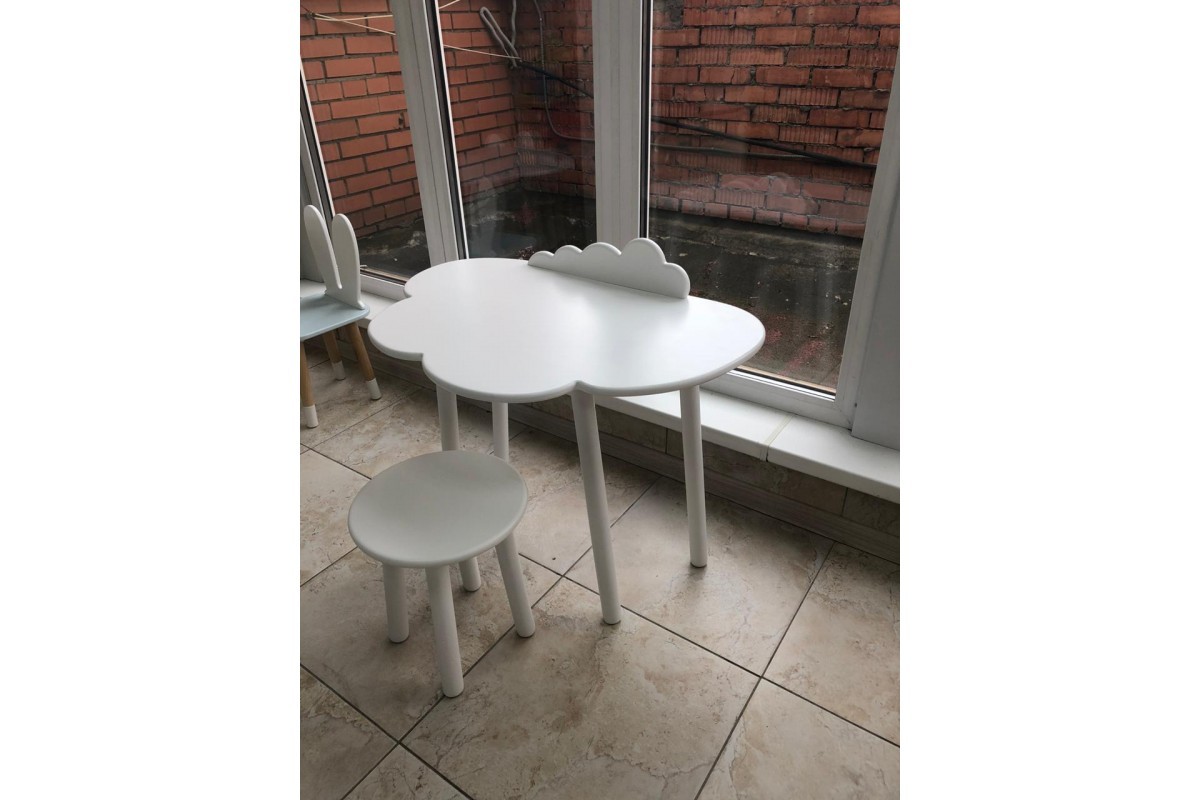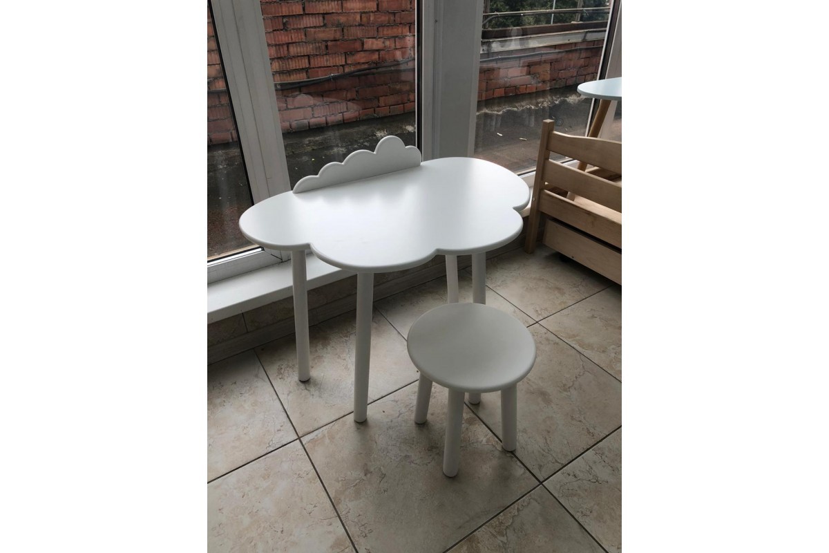 Детский комплект стол облако с бортиком-ограничителем и круглый стул белого цвета