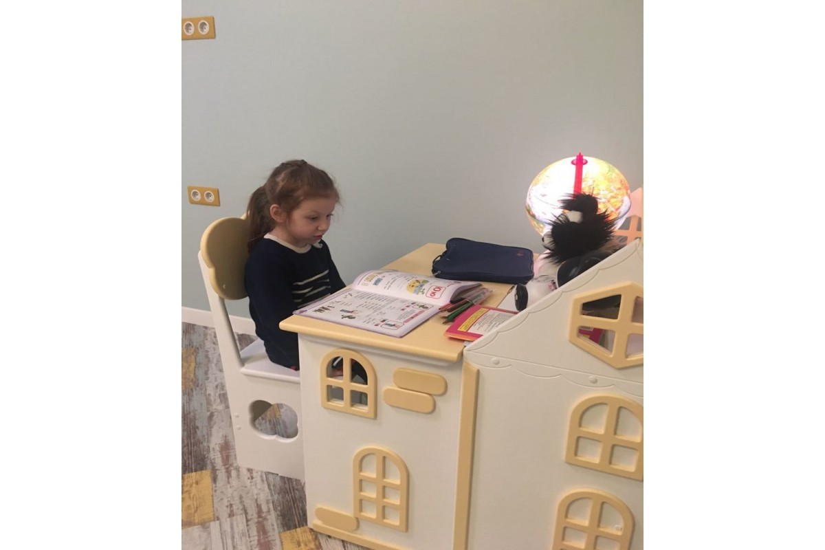 Необычный дизайн детского столика оформленного в виде домика бесспорно понравится вашему ребенку. В сложенном состоянии это домик, под домиком основание стола, которое выкатывается на колёсиках, а опустив крышу получается столешница.