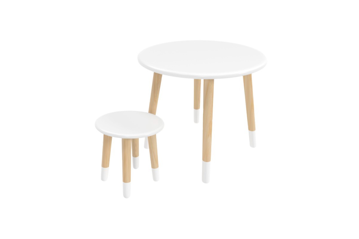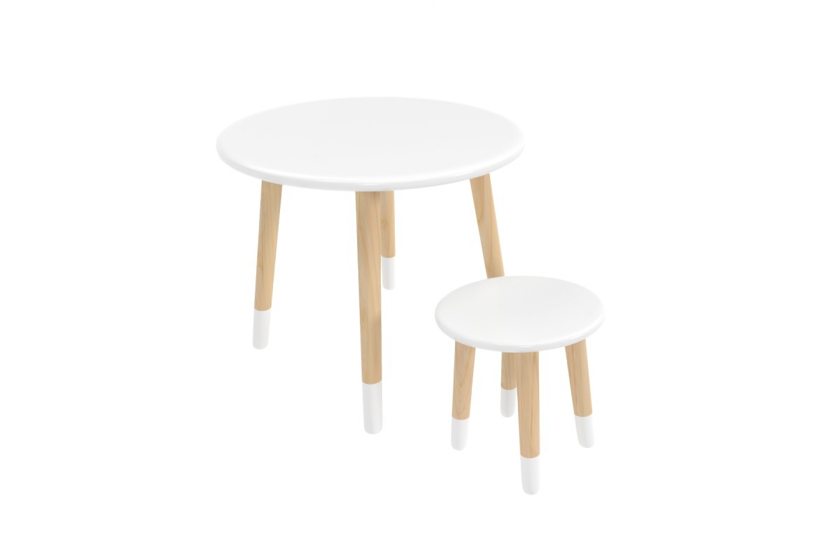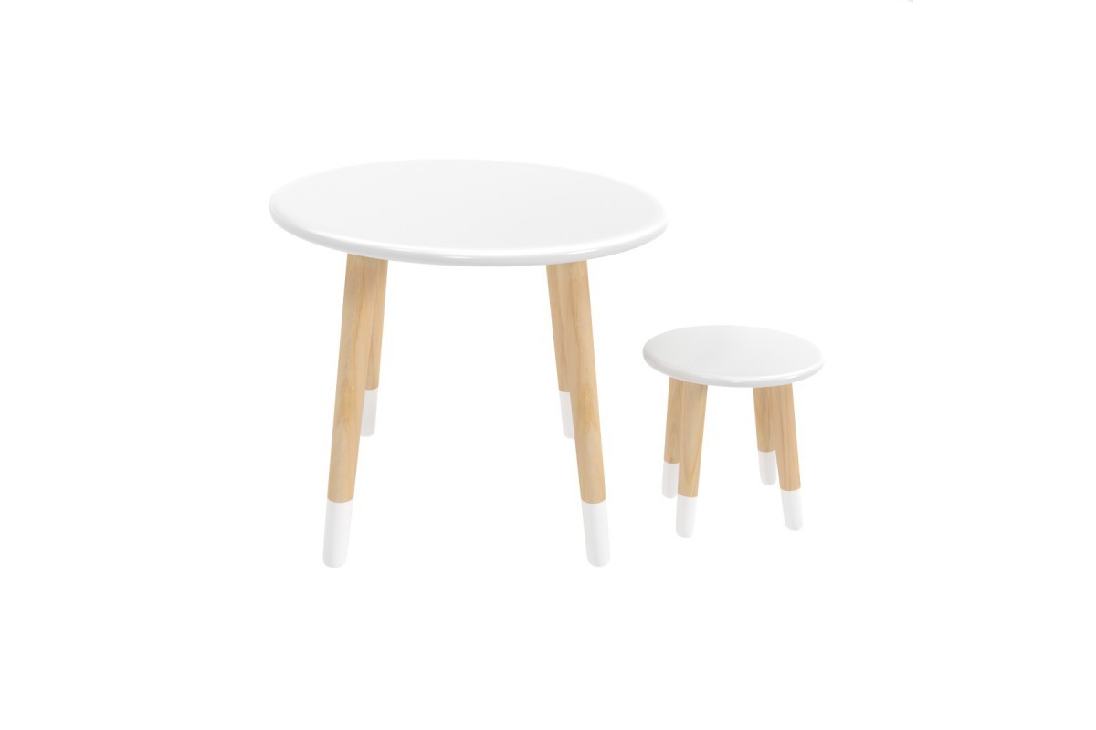 Детский комплект стол и табурет Круглый белый, с носочками, Bambini Letto