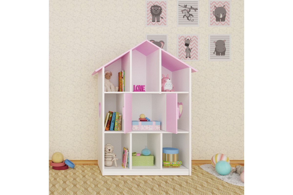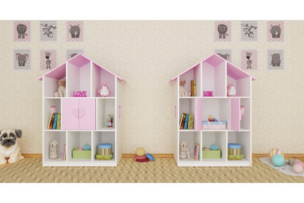Домик-полка-стеллаж - это отличный подарок для ребенка и прекрасное решение для организации пространства детской комнаты. C нашим домиком ребенок не только будет играться, но и научится складывать свои игрушки на место, поскольку домик также выступает как стеллаж и полки для детской комнаты. Теперь любимые машинки, книги, фигурки животных, кубики, и прочие игрушки малыша обретут свой дом.