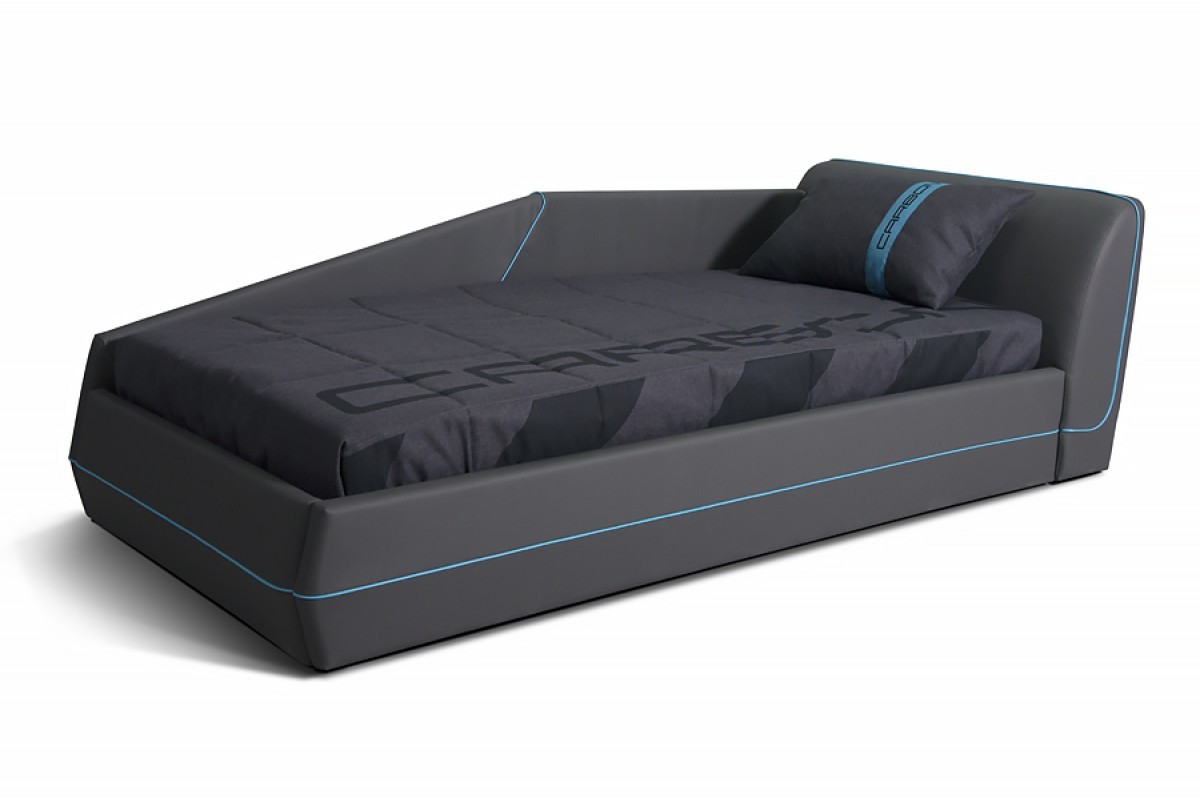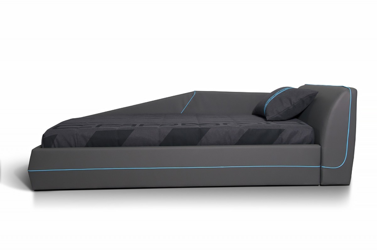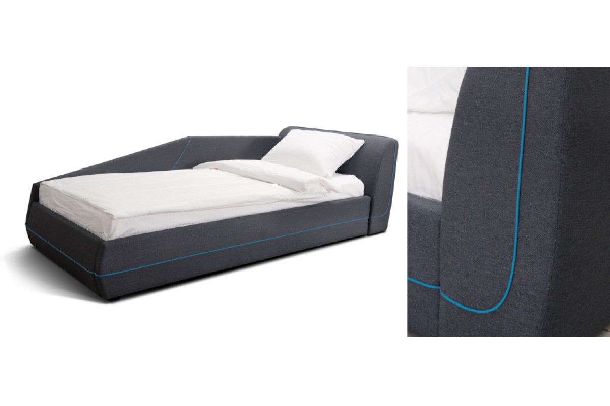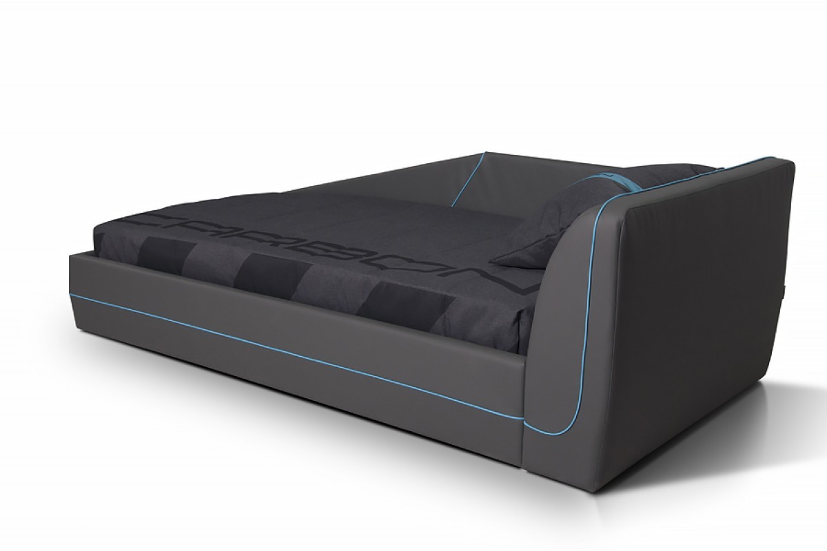 !Задняя спинка кровати обшита технологической тканью с фирменной символикой