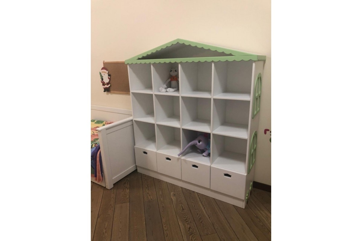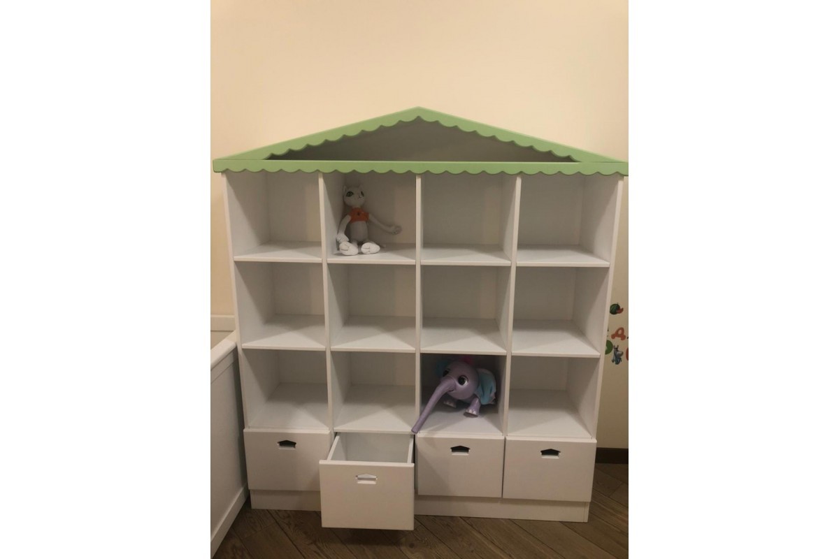 Домик-полка-стеллаж - это отличный подарок для ребенка и прекрасное решение для организации пространства детской комнаты. C нашим домиком ребенок не только будет играться, но и научится складывать свои игрушки на место, поскольку домик также выступает как стеллаж и полки для детской комнаты. Теперь любимые машинки, книги, фигурки животных, кубики, и прочие игрушки малыша обретут свой дом.