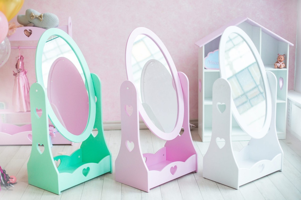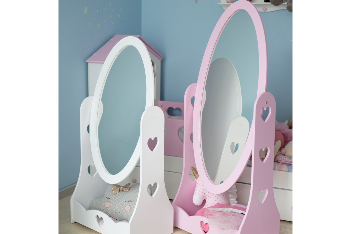 Зеркало для детской - это красивый и функциональный элемент декора. Благодаря детскому зеркалу, вы легко, например, в форме игры, научите своего ребенка самостоятельно одеваться. Размер зеркала позволит ребенку смотреть на себя в полный рост. Есть внутренняя полочка, где можно сложить все украшения и такие важные мелочи для девочек. Данное овальное зеркало подойдет в любую комнату юной принцессы, нужно всего лишь выбрать подходящий вам цвет. Детское зеркало станет уникальным декором вашей детской комнаты!