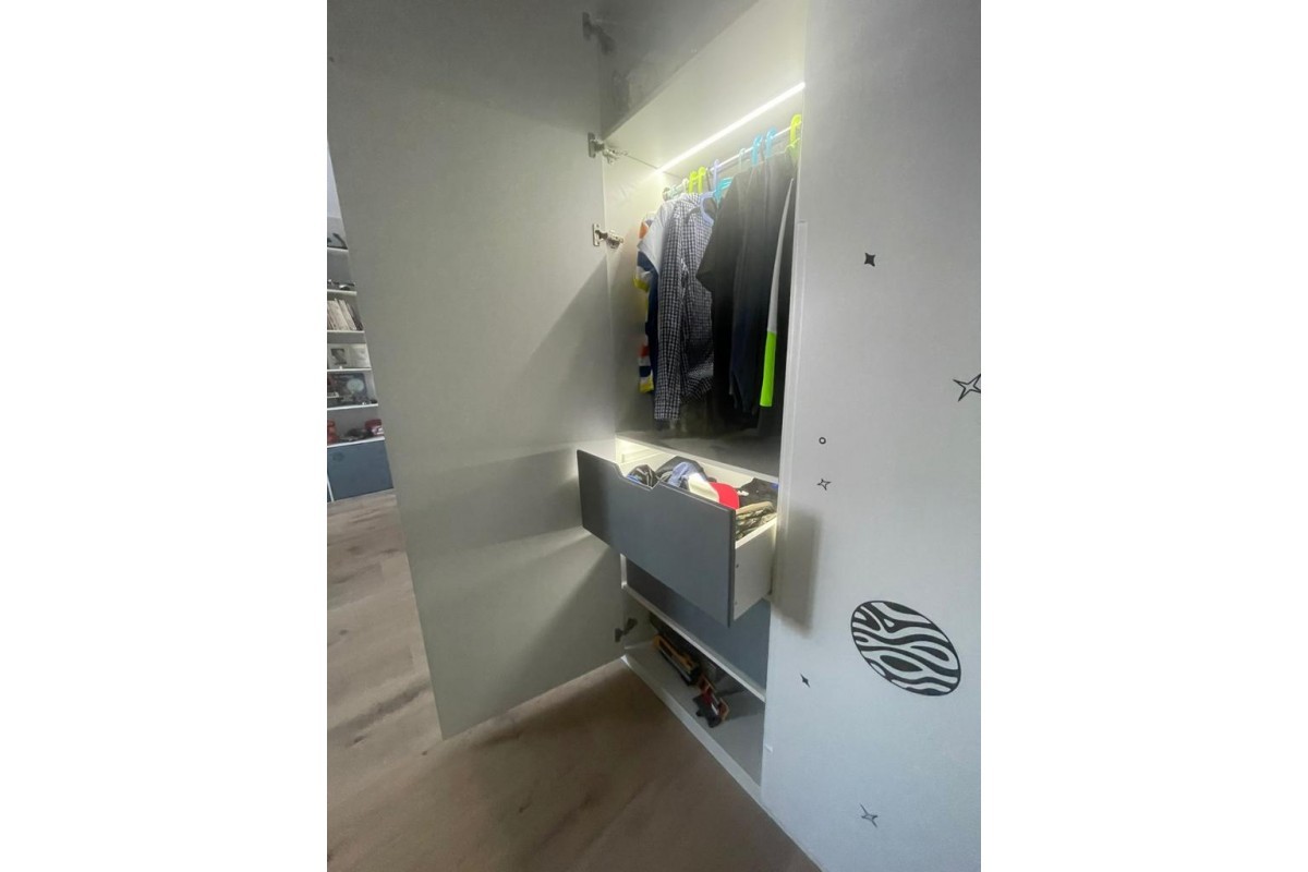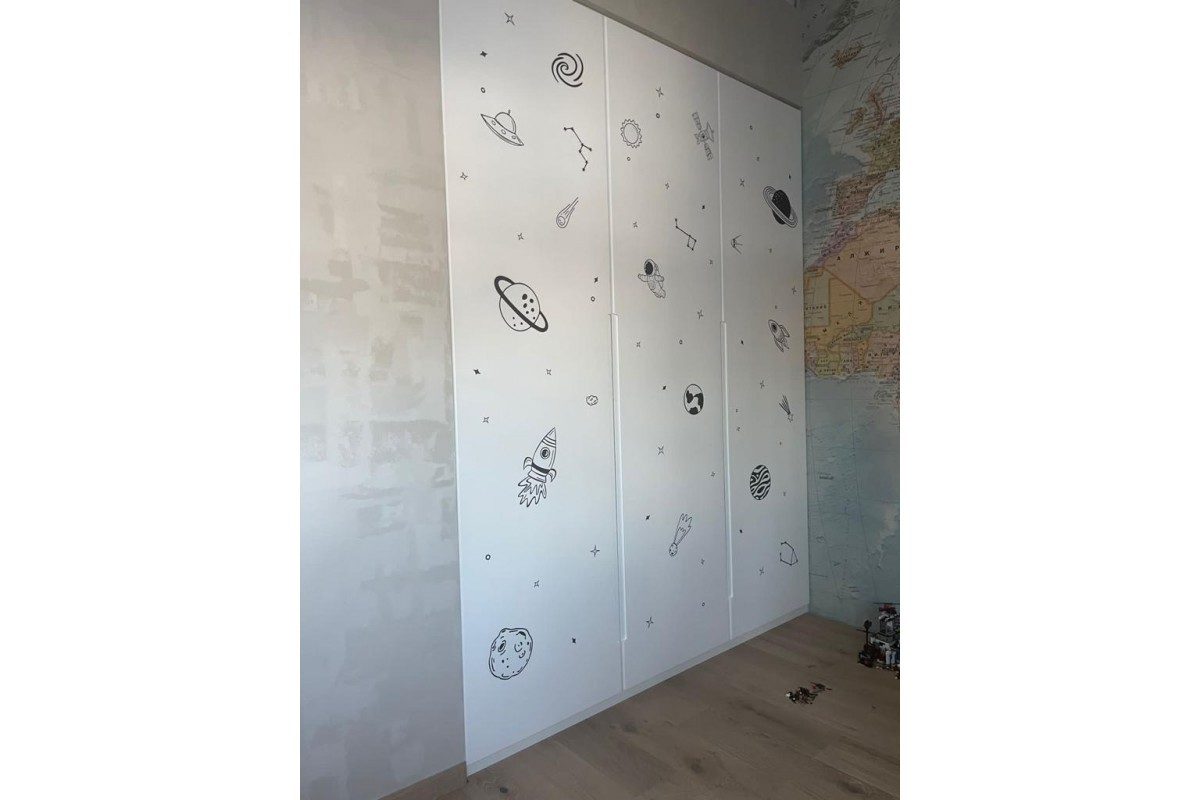 Решили сделать монохромную детскую комнату, но хочется изюминки? Трехстворчатый детский шкаф с принтом космос будет идеальным решением. Шкаф выполнен в классическом формате с продуманной системой полок и отделений. Что максимально удобно и практично в организации порядка, а также ребенок будет знать на какое место убирать ту или иную вещь без подсказок со стороны взрослых.