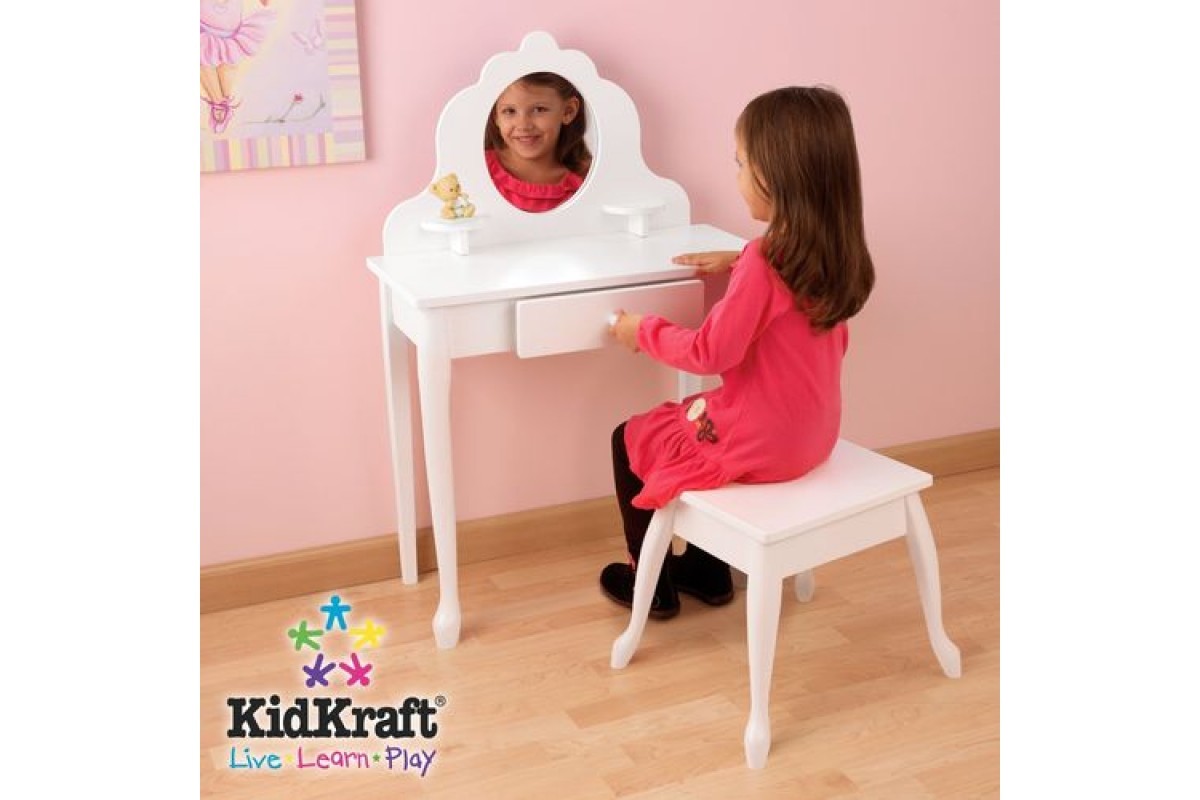 Белый туалетный столик из дерева для девочки "Модница" (White Medium Vanity & Stool), KidKraft