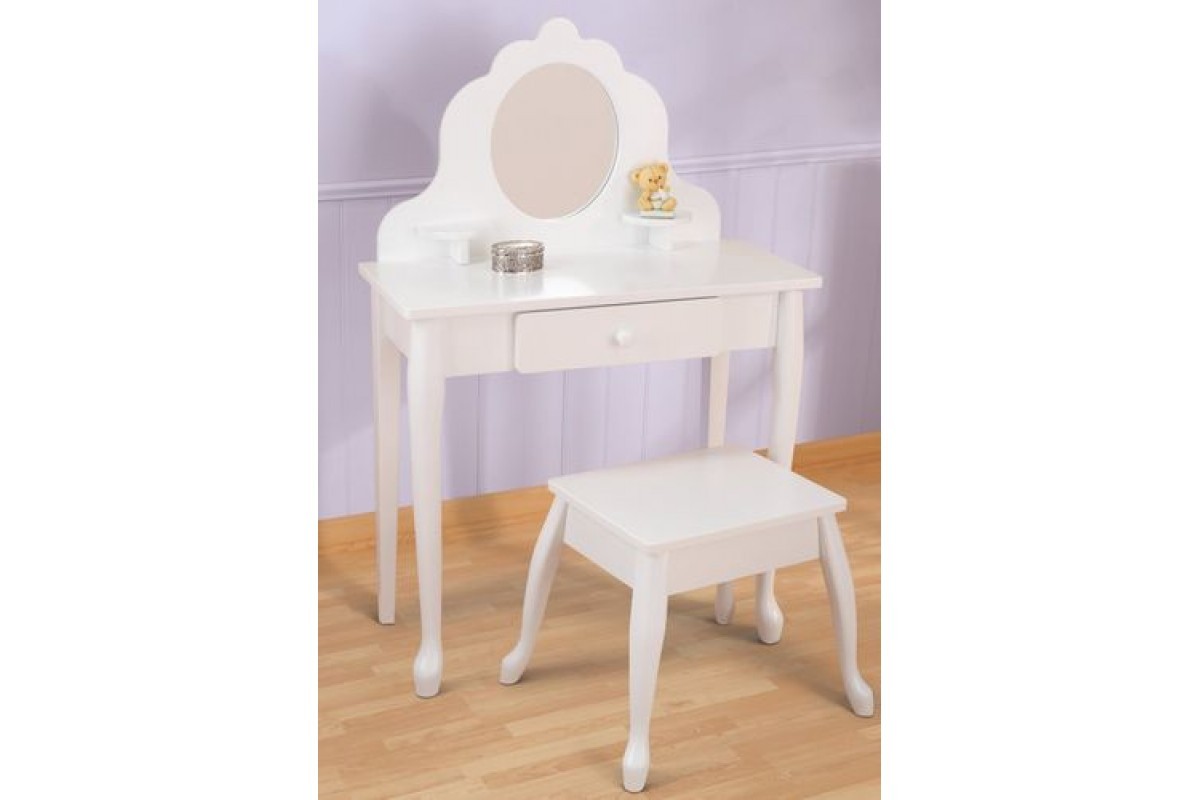 Дерево, из которого изготовлен туалетный столик «Модница» (White Medium Vanity & Stool), отличается экологичностью, тщательно обработано по всему периметру, что делает его абсолютно безопасным для ребенка.